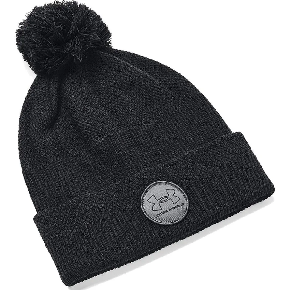 Le bonnet Driver Pom Black Under Armour offre isolation thermique et confort grâce à sa maille côtelée acrylique et à la technologie ColdGear Infrared.