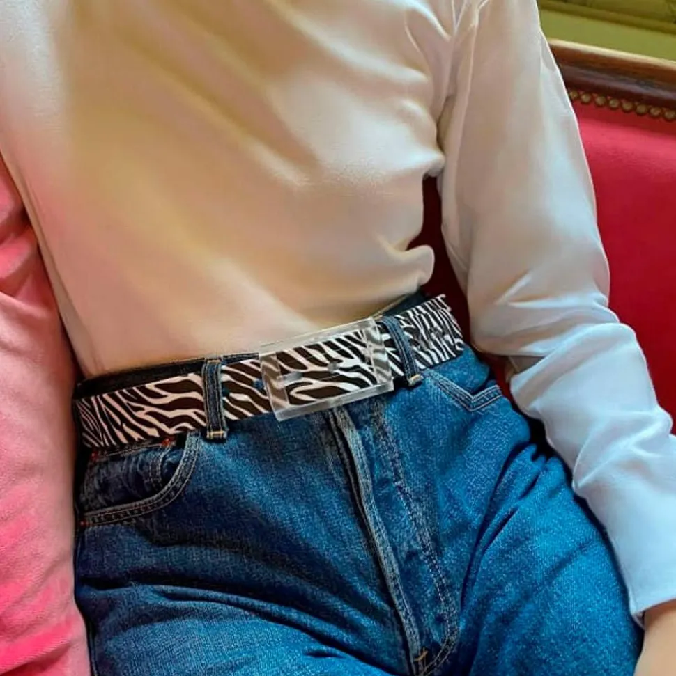 Innovante, la ceinture Skimp Print Black Zèbre se distingue par sa matière en plastique recyclable, évitant tout déclenchement d’alarme dans les aéroports.