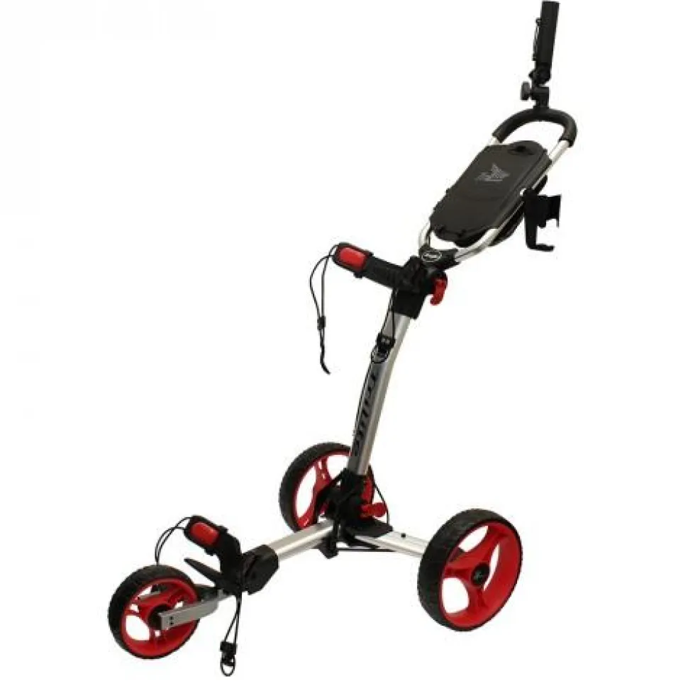 Efficace et robuste, le chariot golf 3 roues Axglo Tri Lite Gris Roues Rouge se plie très facilement pour prendre le minimum de place dans le coffre de votre voiture
