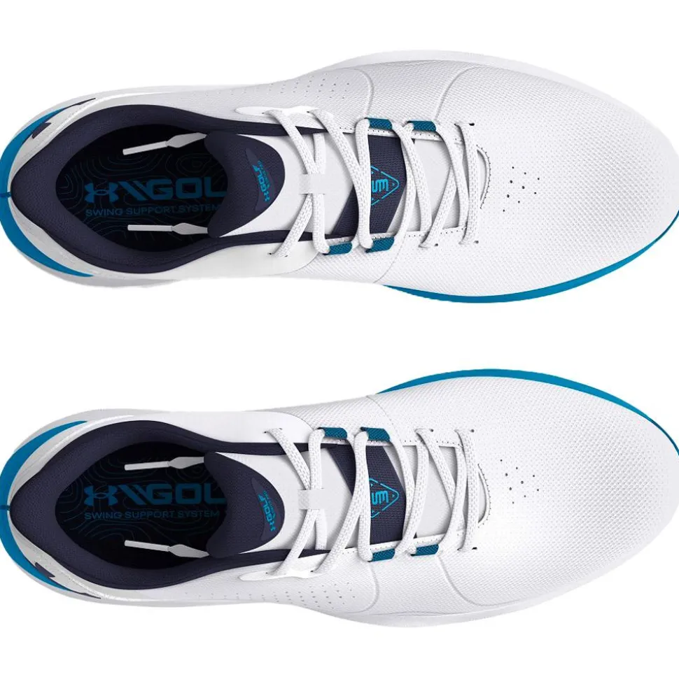 La chaussure de golf Under Armour Drive Pro Wide White Capri Midnight Navy combine confort, soutien et adhérence grâce à ses technologies avancées et son design revisité.