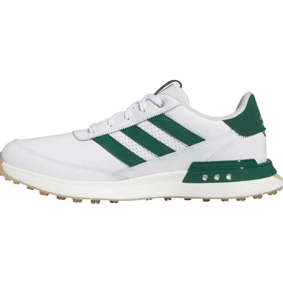 La Adidas S2G SL Leather 24 White Collegiate Green Gum est une chaussure de golf imperméable au style basket, offrant confort, stabilité et traction polyvalente.