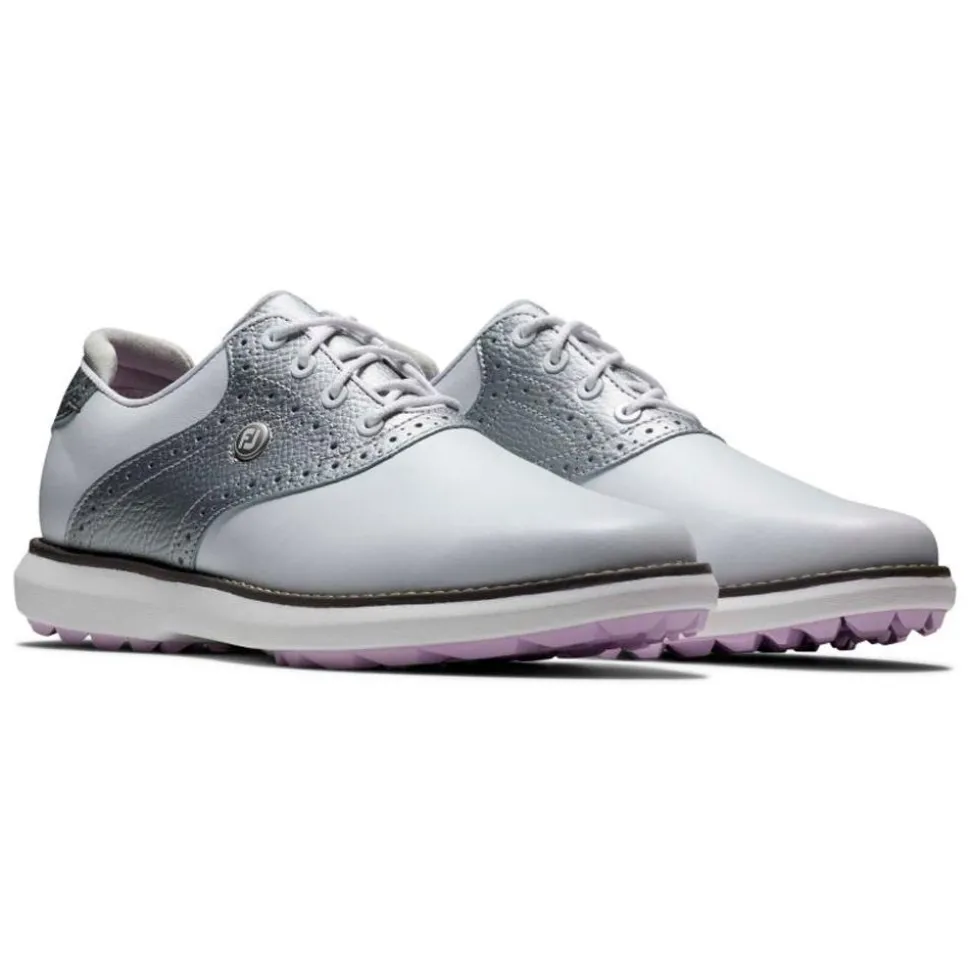 Grâce à leurs semelles externes en caoutchouc VersaTrax, les chaussures golf pour femme Footjoy Women’s Traditions Spikeless assurent une adhérence maximale sur tout type de parcours.