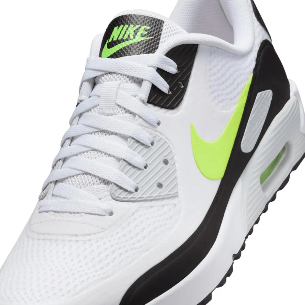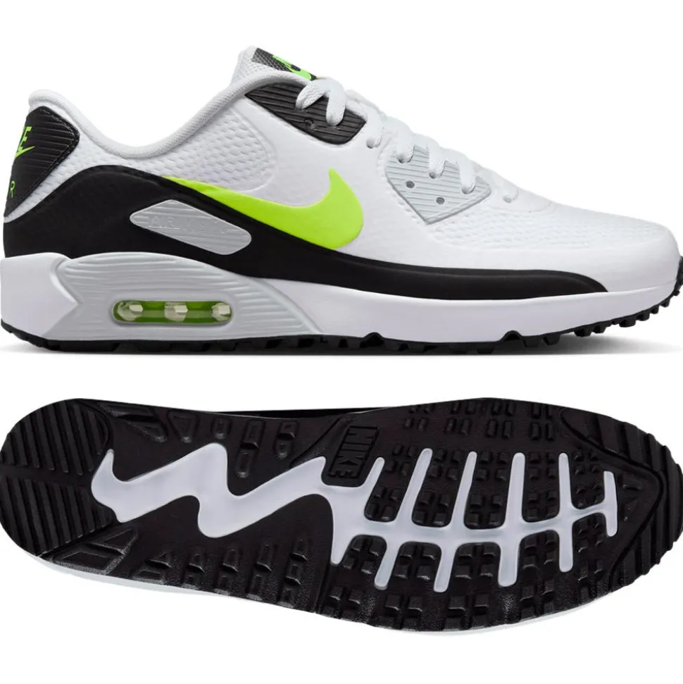 La Nike Air Max 90 G White Hot Lime allie l’élégance iconique au terrain de golf avec son design classique enrichi de fonctionnalités spécifiques, garantissant style et performance en toute circonstance.