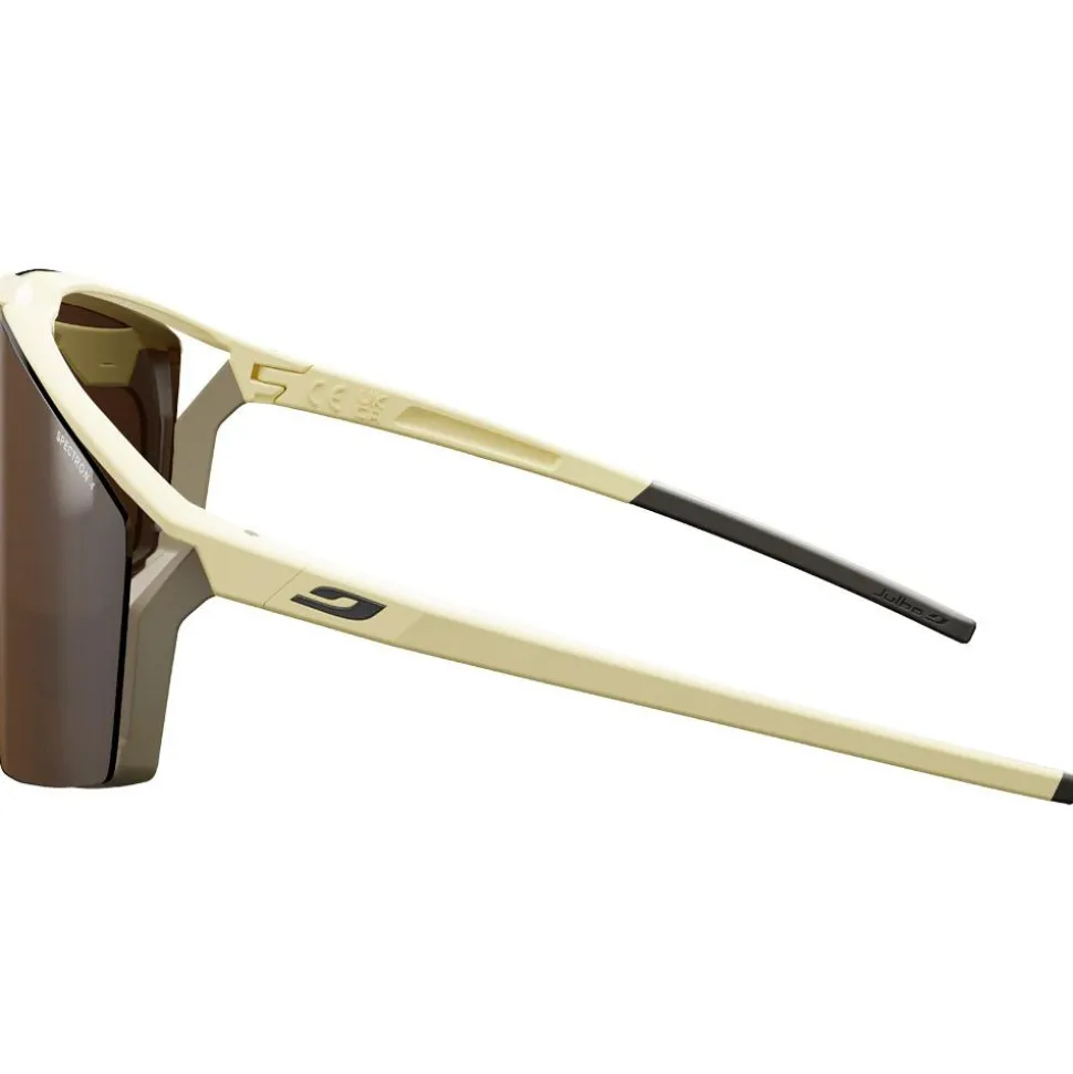 Parfaites pour les courses d’alpinisme, les lunettes de soleil Edge Cover Mat Marron Clair Marron Foncé Spectron 4 signées Julbo vous protègent les yeux efficacement en haute montagne.