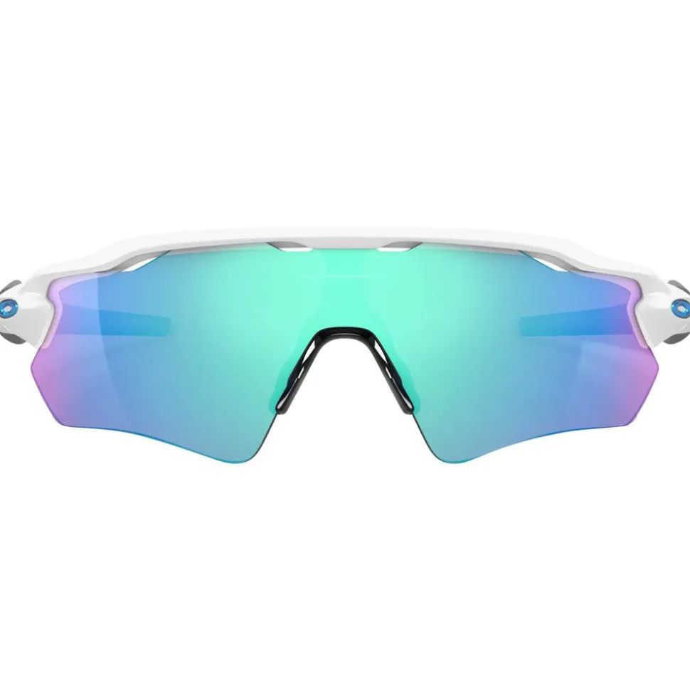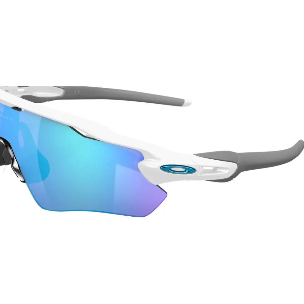 Equipées d’un seul verre qui fait office d’écran de protection, les lunettes de soleil Oakley Radar Ev Path Polished White Prizm Sapphire enveloppent parfaitement le visage.