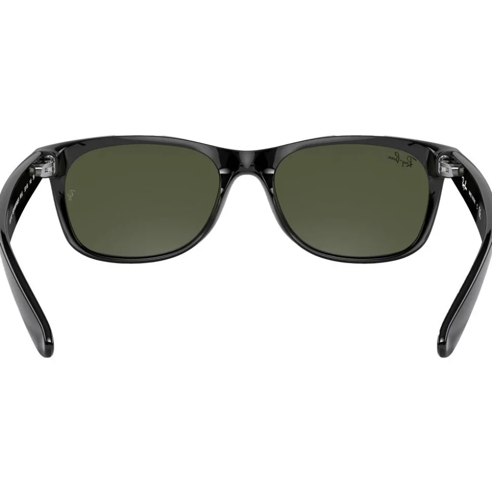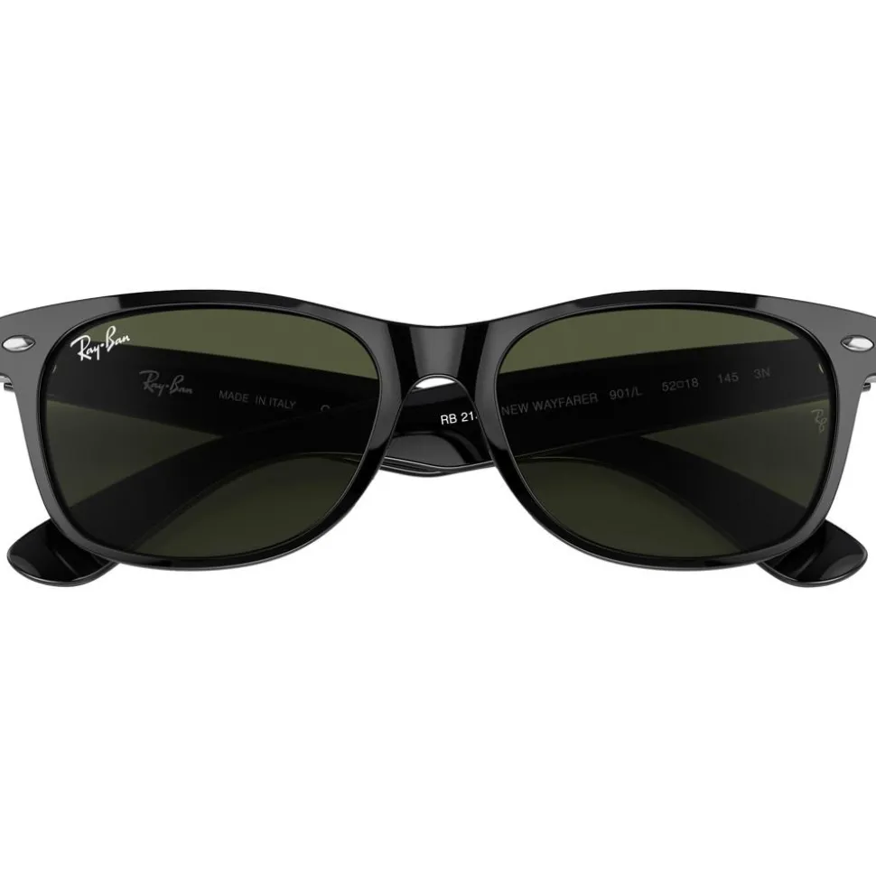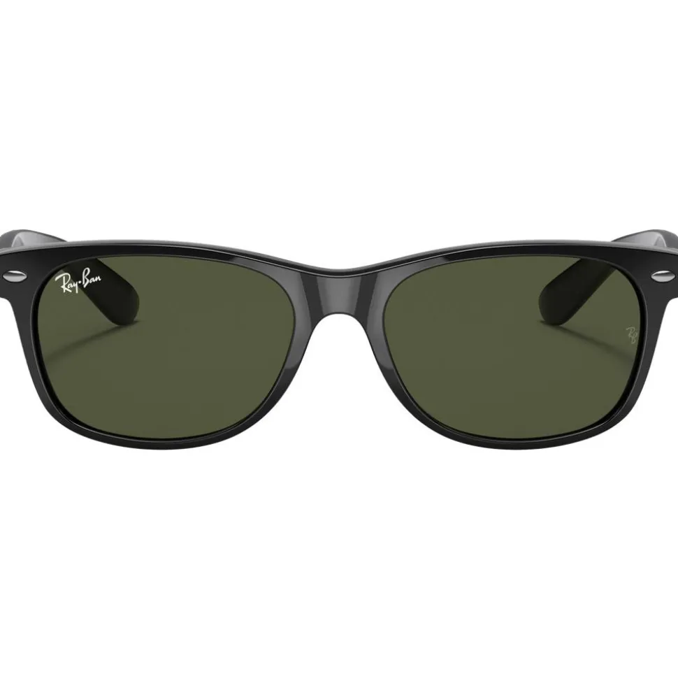 Les lunettes de soleil Ray Ban RB2132 New Wayfarer Classic Polished Black Green G-15 offrent un confort léger et une vision nette grâce à leurs verres de catégorie 3.