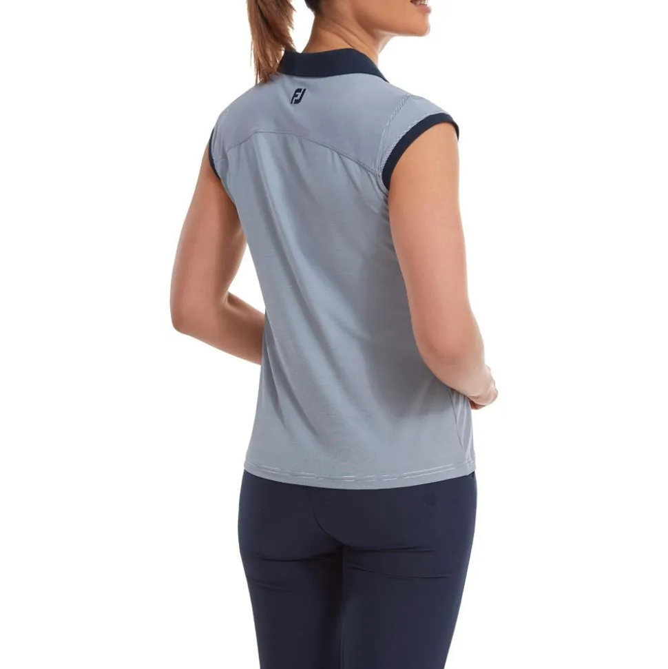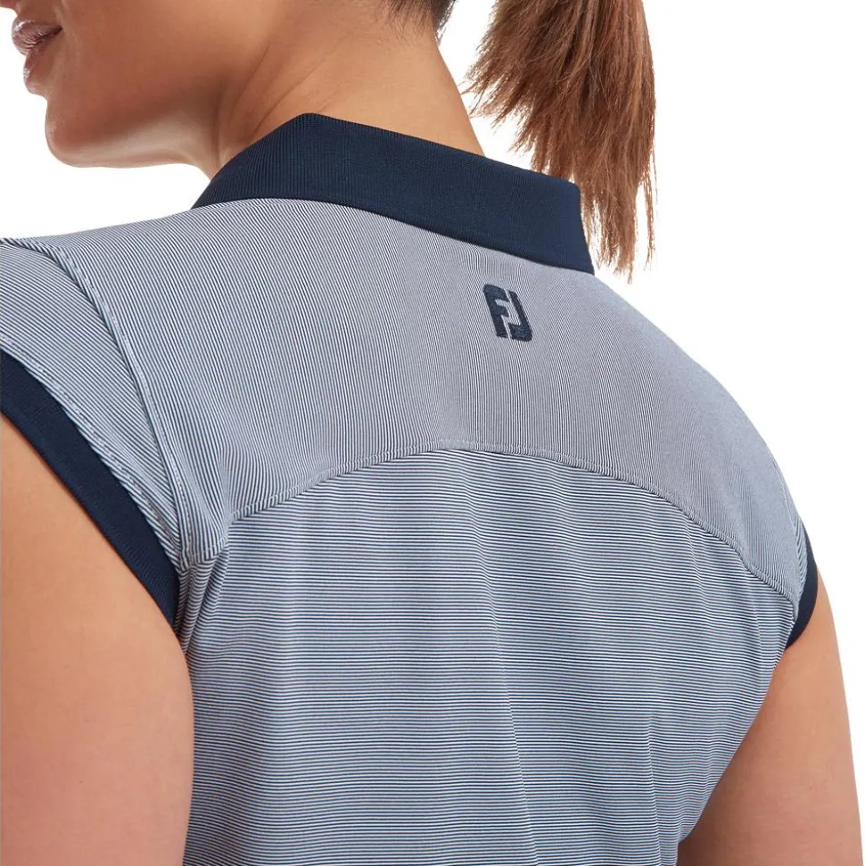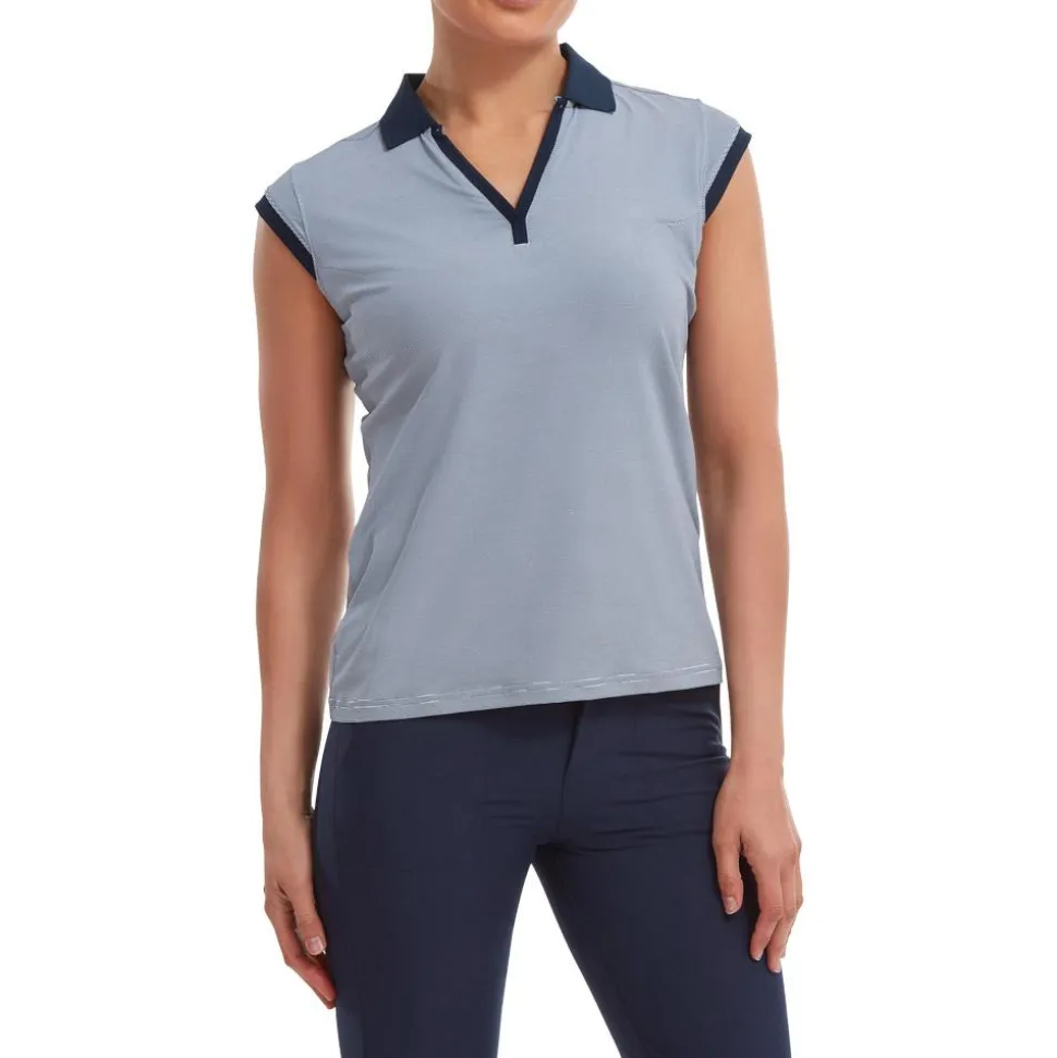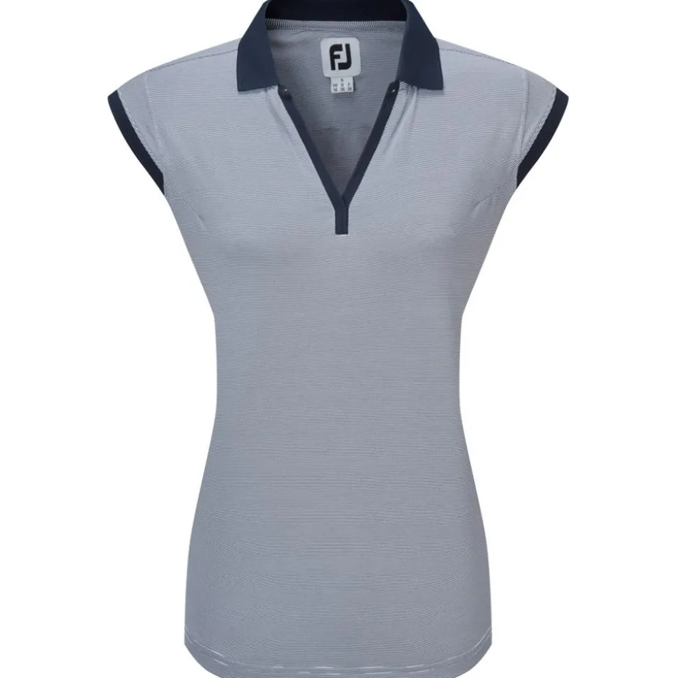 Avec son col V et ses mancherons, le polo golf femme End On End Striped Lisle Navy de Footjoy s’éloigne de la ligne classique habituelle, dans une conception soignée qui s’apprécie à chaque partie