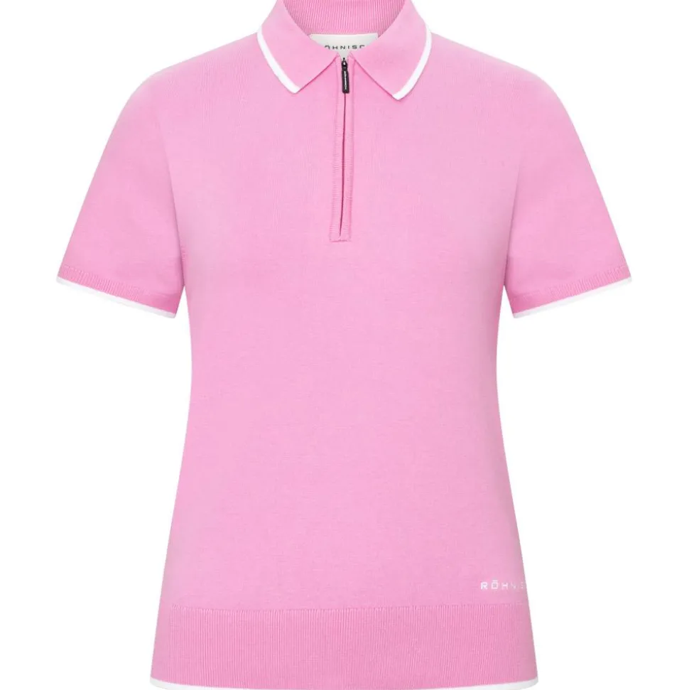 Le polo Knitted Polo Top Fuchsia Pink de Rohnisch combine confort, performance et élégance pour les golfeuses avec sa composition élastique, son col demi-zip et son tricot uni respirant.