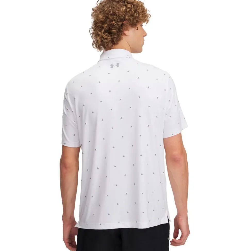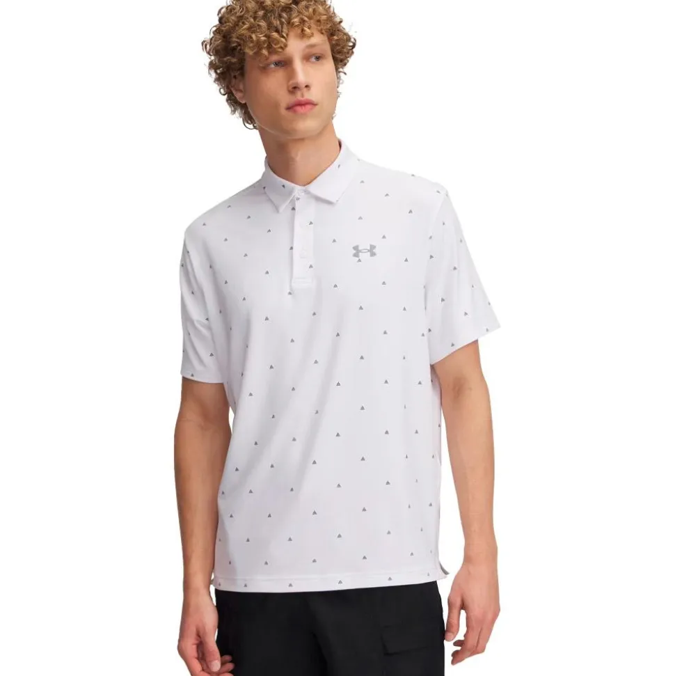 Le polo de golf Under Armour Playoff 3.0 Printed Polo White Steel combine matière stretch performante, gestion optimale de la transpiration et protection SPF 40, garantissant confort et fraîcheur sur le parcours.