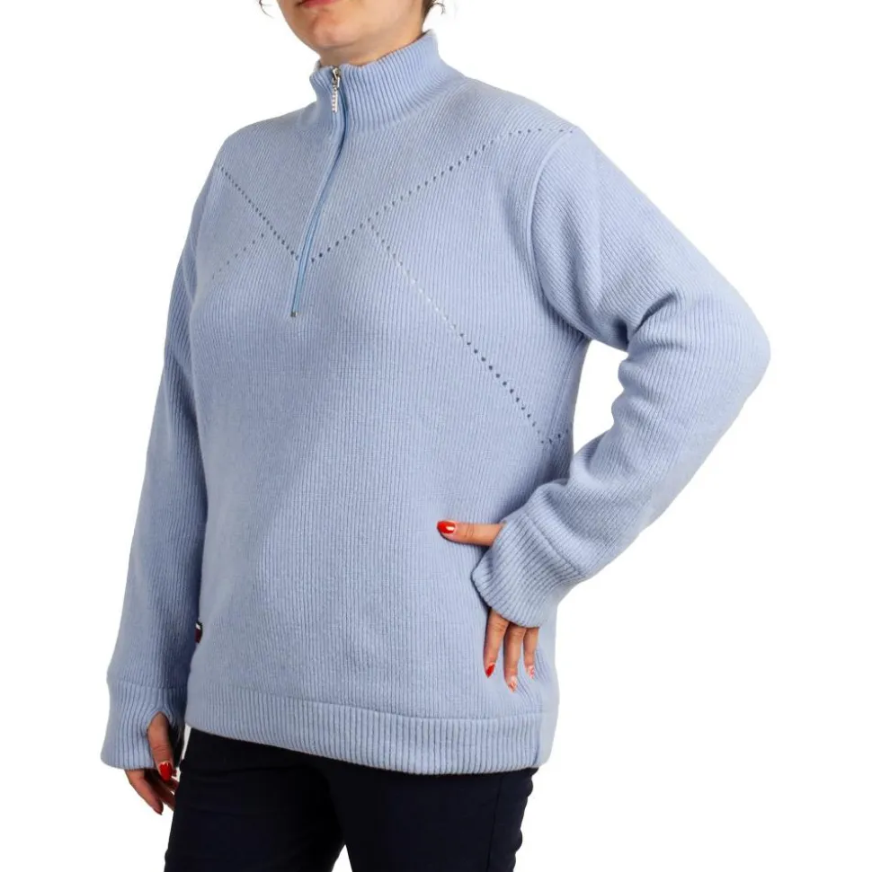 Le pull golf femme Francoise Bleu Clair de Chiberta allie douceur, élégance et confort pour accompagner chaque moment sur le green avec style.