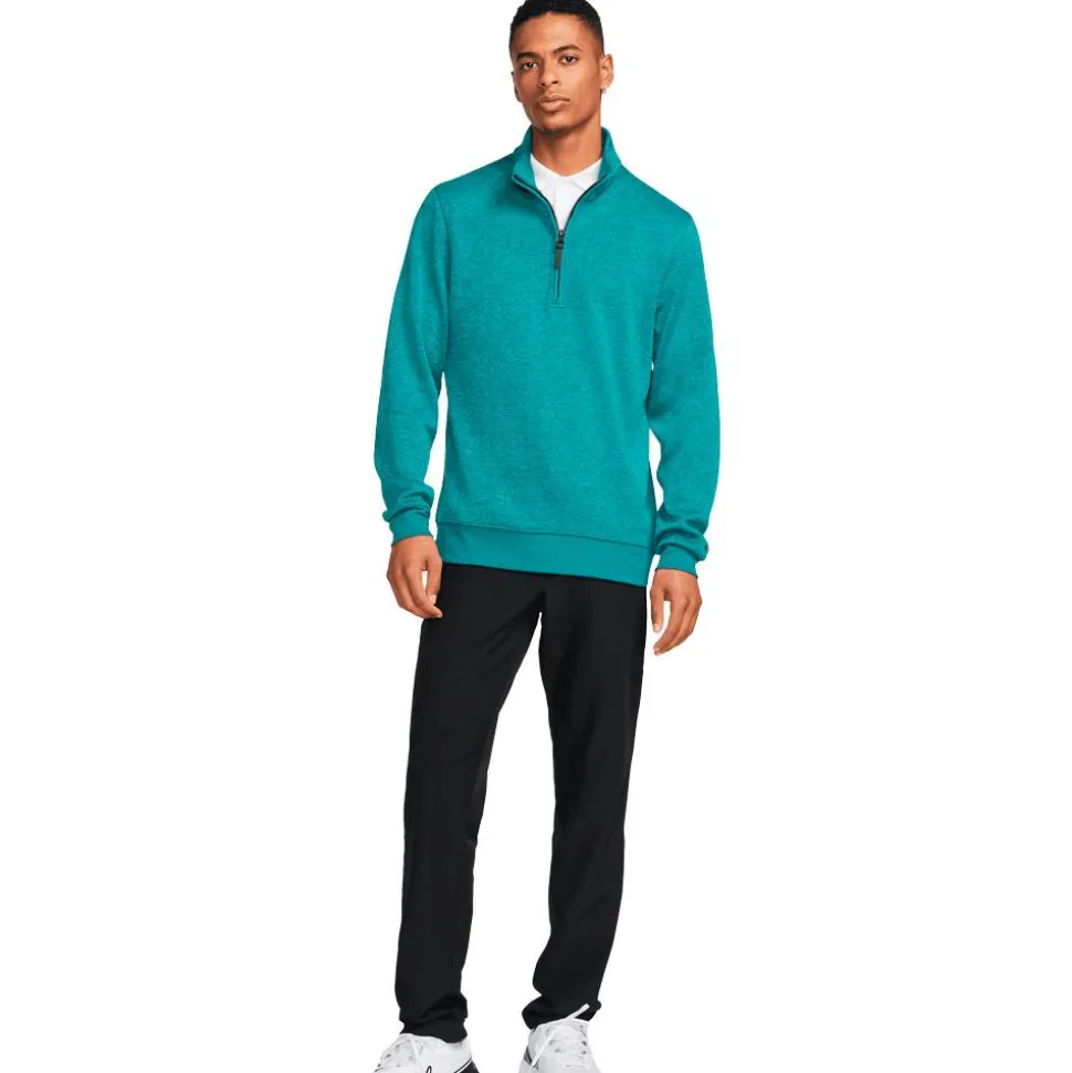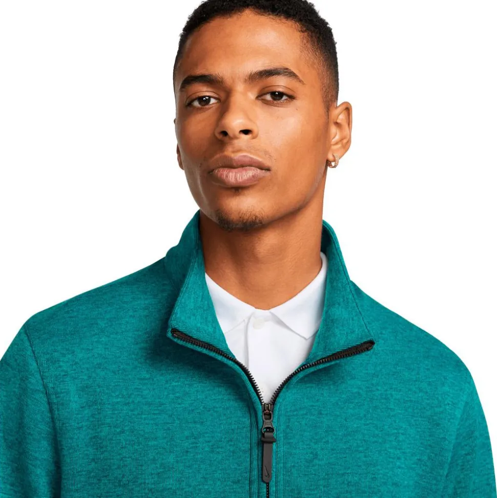 Le pull de golf Dri-Fit Player Half Zip Geode Teal Nebula de Nike offre confort et chaleur pour les parties de golf par temps frais.