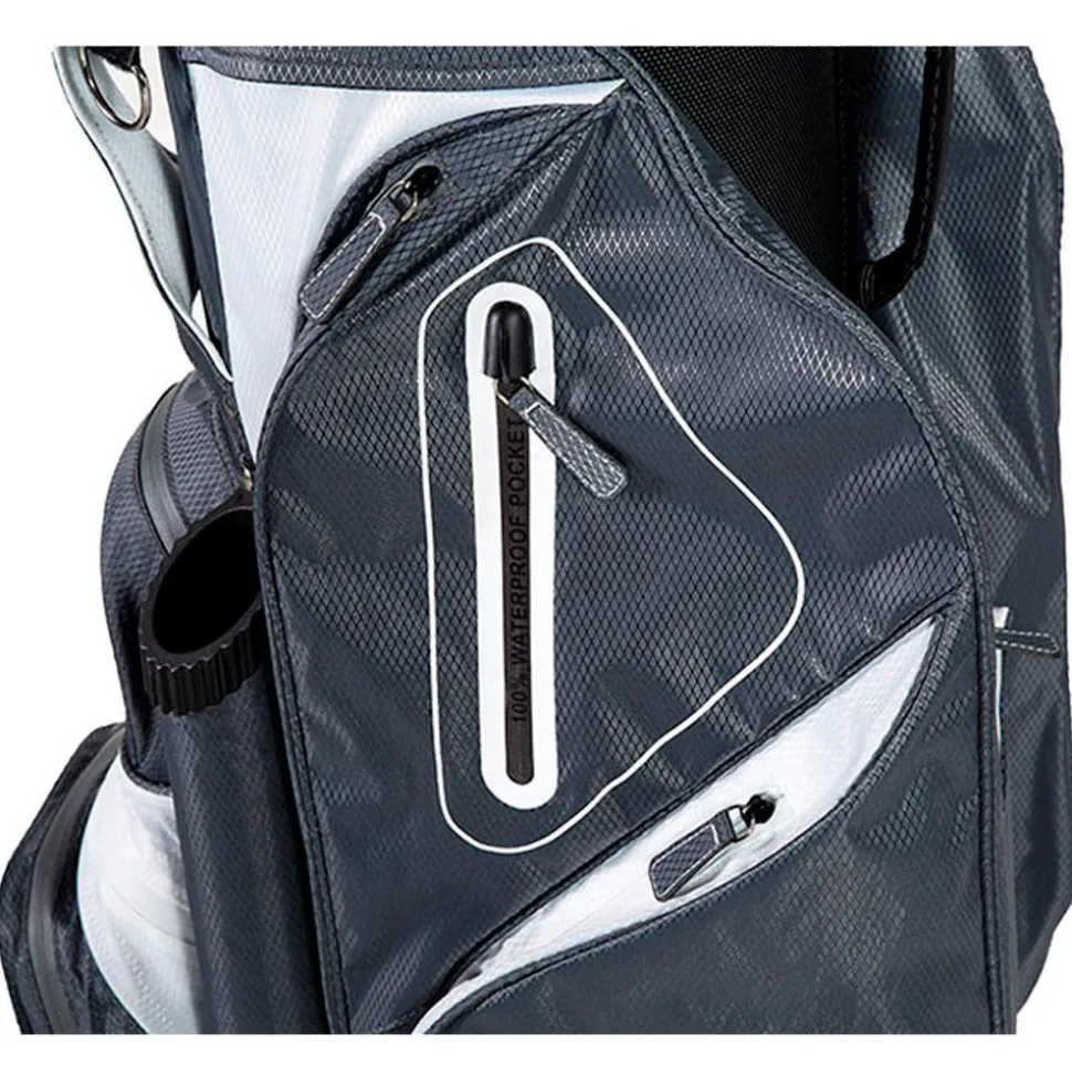 Conçu par JuCad pour emporter facilement tout votre équipement sur les parcours, le sac golf Manager Aquata Gris Blanc possède 14 séparateurs pleine longueur et de multiples poches polyvalentes