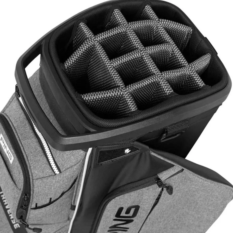 Le sac chariot Ping Traverse 244 est conçu pour offrir une grande fonctionnalité et un excellent confort. Fabriqué en polyester avec un traitement déperlant, il résiste efficacement aux intempéries. Ce modèle dispose de 14 compartiments, dont deux grands puits pour putter, permettant une organisation pratique de vos clubs. Avec 11 poches, y compris une isotherme pour garder vos boissons à température idéale, il garantit un rangement optimal pour tous vos accessoires. Il est également équipé d’une poignée souple surmoulée pour une prise en main agréable et confortable. Idéal pour les golfeurs à la recherche d’un sac spacieux et pratique.