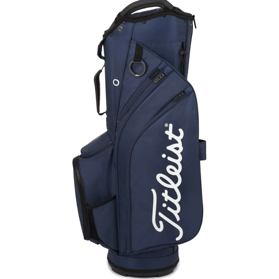 Le sac chariot série Titleist Cart 14 Navy assure le transport de votre matériel de golf pour pouvoir évoluer sur le terrain avec clubs, balles, tees, télémètre, serviette et boisson à portée de main.
