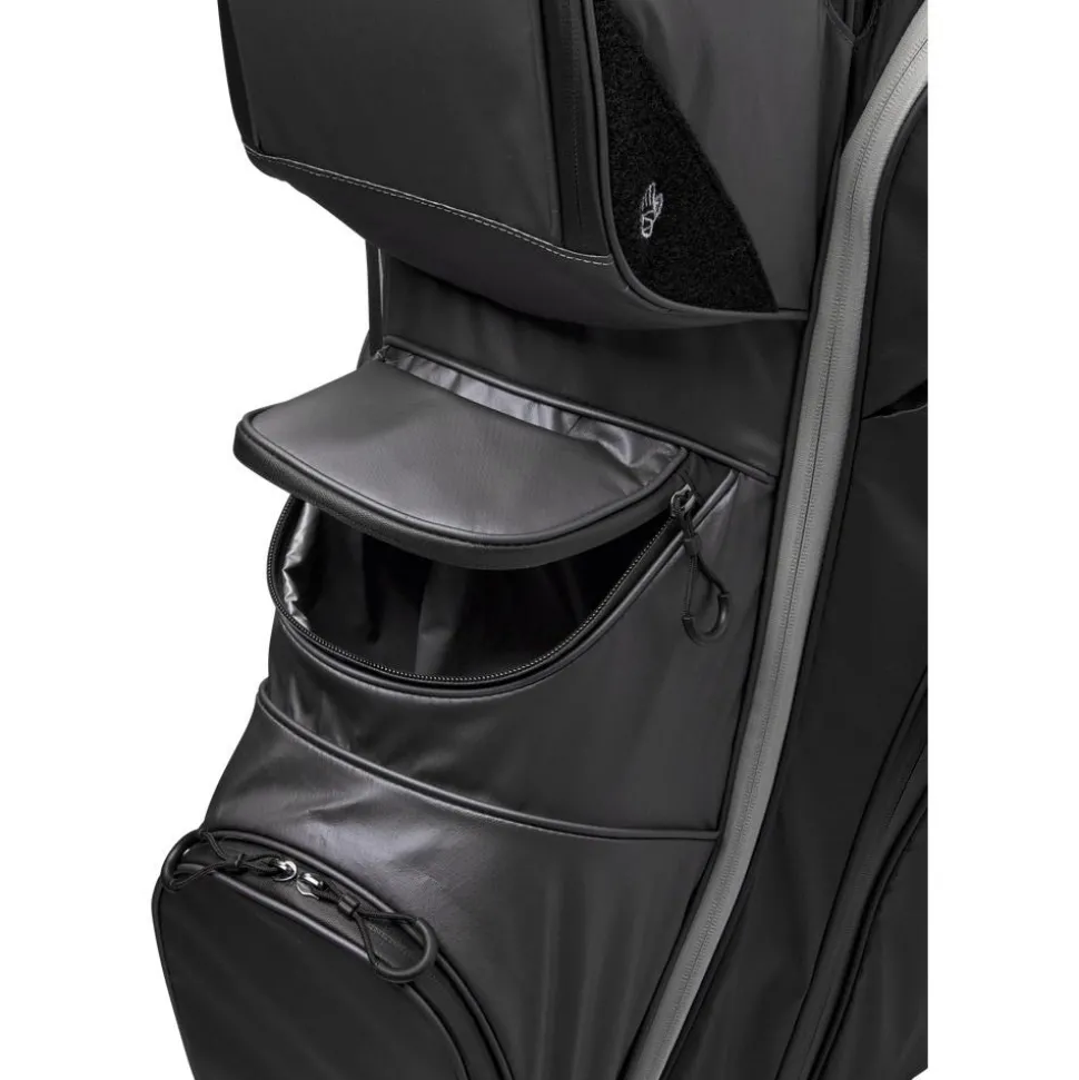 Ce sac propose 9 poches bien agencées, incluant 2 grandes poches vêtements, une poche isotherme spacieuse, 2 poches dissimulées pour vos objets de valeur et une poche aimantée pour le télémètre. Modèle haut de gamme, il possède aussi un support de parapluie, un porte-serviette et un capuchon de pluie permettant d’affronter la pluie si une grosse averse survient.