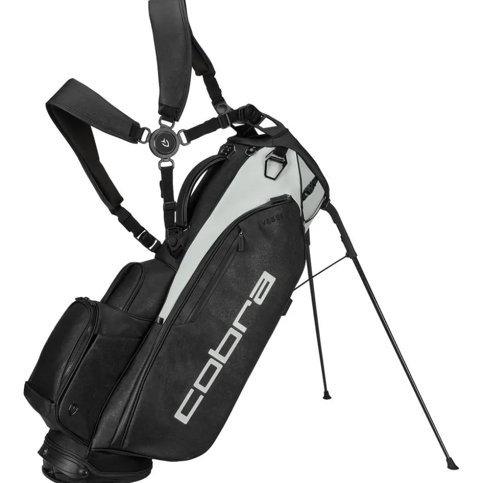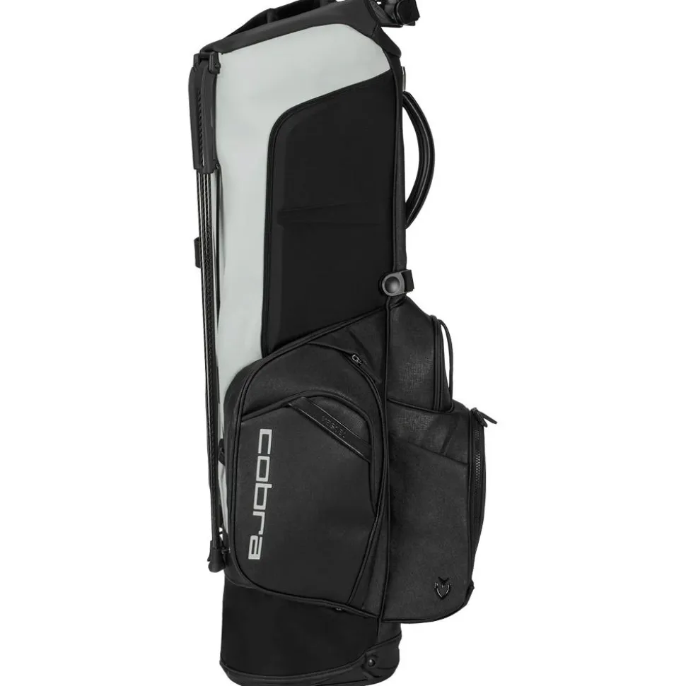 Le Cobra X Vessel Player Tour Stand Black Avalanche Gray est un sac trépied de golf haut de gamme, alliant légèreté et robustesse, avec 6 compartiments, 8 poches et pieds en fibre de carbone.
