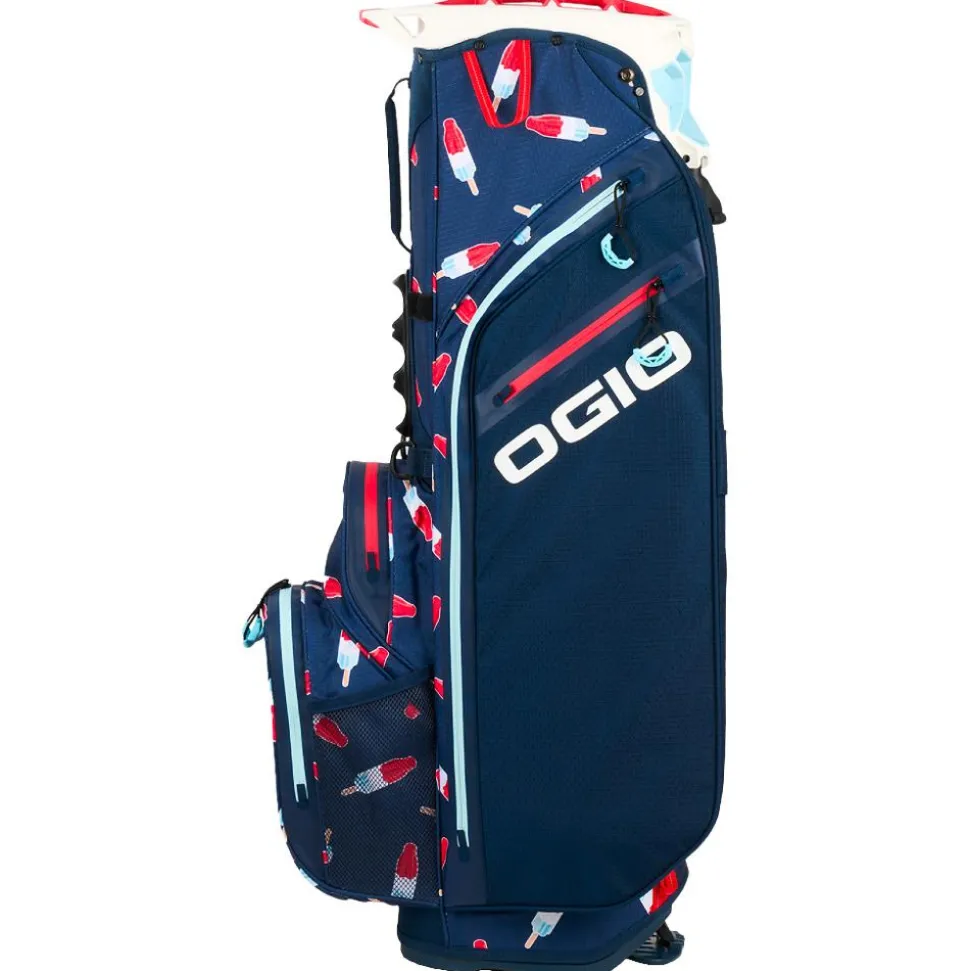 Ce sac Ogio comprend plusieurs poches fonctionnelles, dont une poche pour objets de valeur totalement étanche, idéale pour garder vos appareils électroniques au sec, mais aussi une poche isotherme pour vos boissons ou encore une poche pour vos balles. Les sangles de fixation permettent d’installer ce sac sur un chariot de golf, lui assurant une stabilité parfaite. Enfin, une housse parapluie est incluse pour permettre d’en prendre un avec soi.