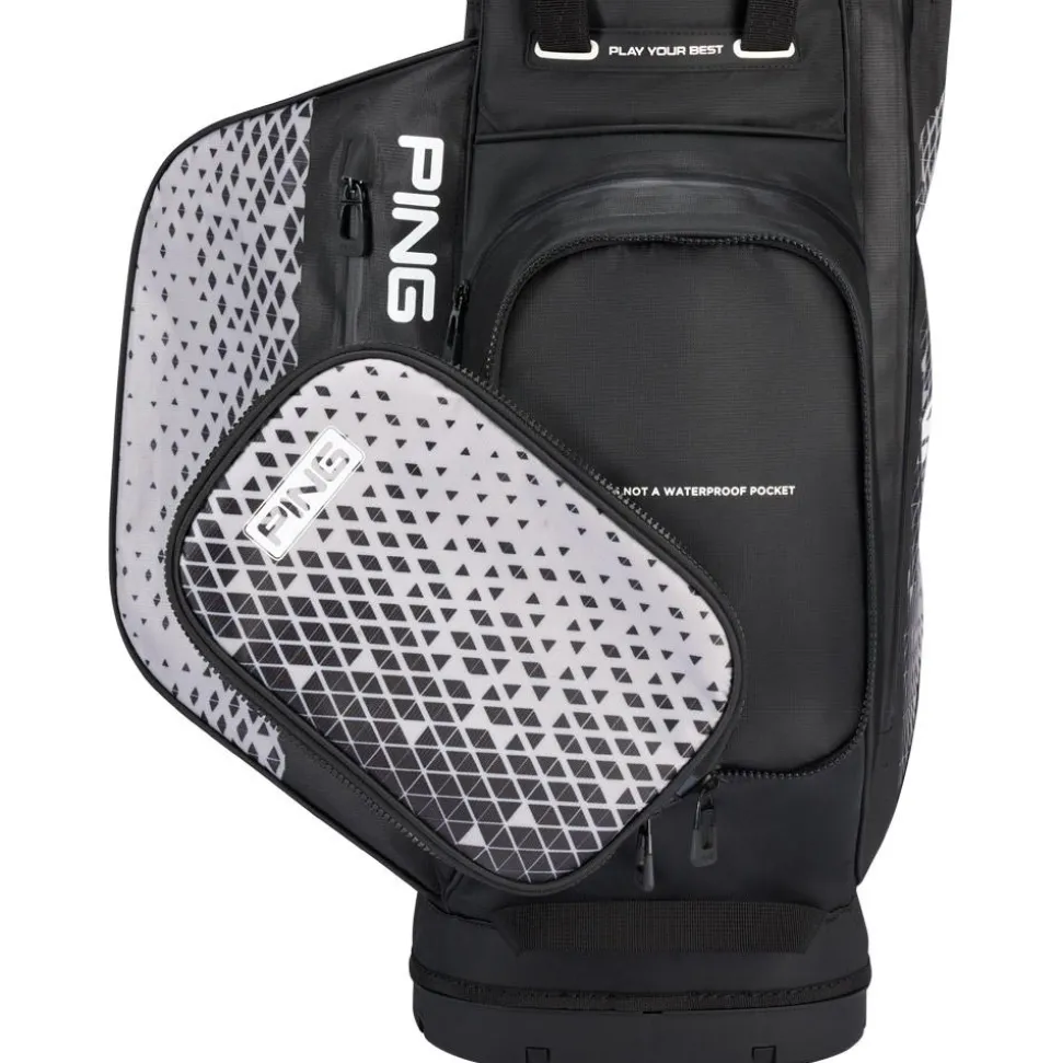 Le Ping Hoofer Monsoon 231 Black Grey est un sac trépied imperméable avec 5 compartiments et 6 poches pour une organisation optimale de votre matériel de golf.