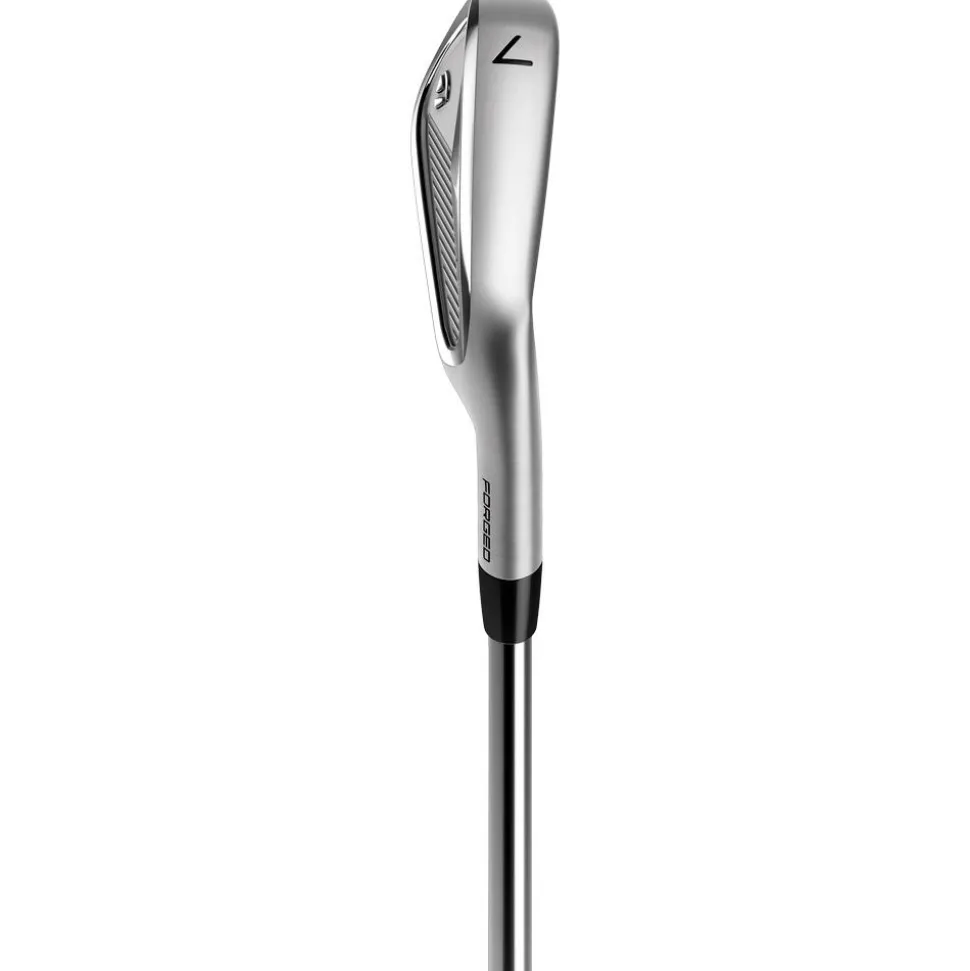 Les fers P-7MC bénéficient d’un design inspiré par le Tour, leur aspect à l’adresse est épuré grâce à la ligne supérieure fine et l’offset progressif. La semelle fine et le bord d’attaque serré garantissent un contact régulier avec le sol.