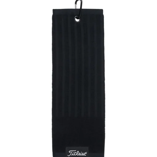 Très pratique avec son mousqueton intégré, la serviette Titleist Tri-Fold Cart Towel Black reste continuellement à portée de main sur le parcours, fixée à votre sac de golf