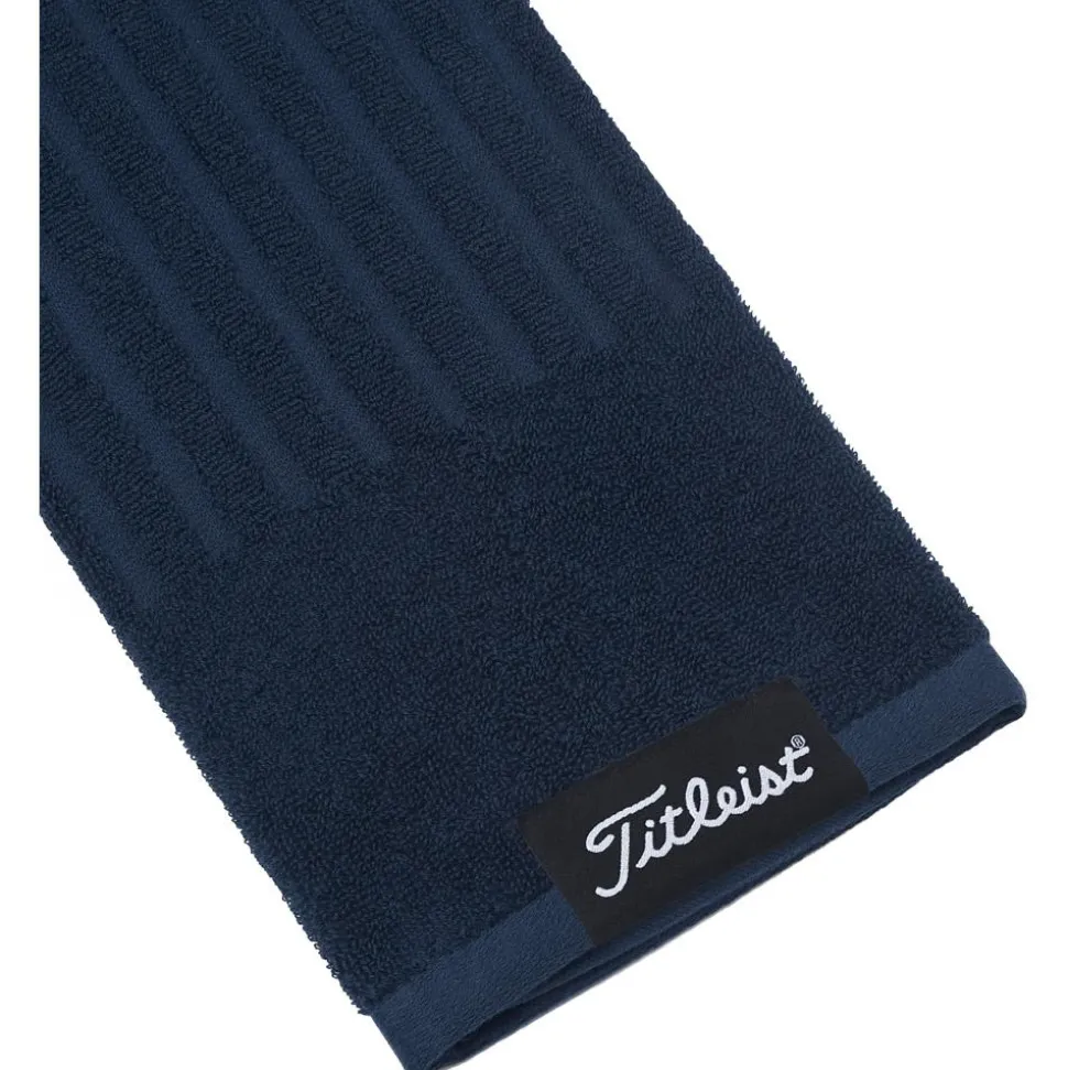 Grâce à son mousqueton, la serviette golf Tri-Fold Cart Towel Navy de Titleist se fixe tout simplement à votre sac, permettant de ne pas la perdre et de l’avoir continuellement sous la main