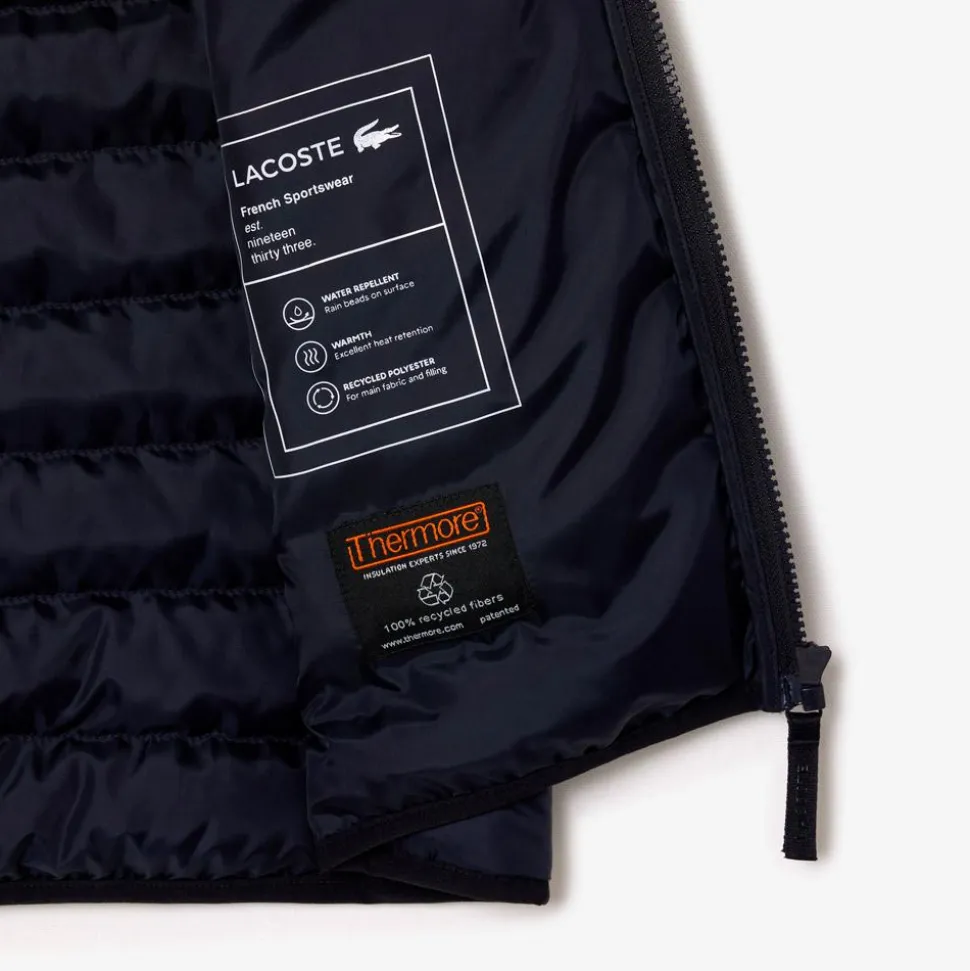 La veste de golf sans manches Lacoste Sportswear Sleeveless est pensée pour allier protection, confort et liberté de mouvement sur le parcours. Confectionnée en polyester recyclé, elle met en avant une conception durable tout en garantissant performance et durabilité. Son tissu en taffetas bénéficie d’un traitement déperlant, idéal pour faire face à l’humidité légère ou aux rosées matinales. Le rembourrage Thermore® en fibres recyclées assure une isolation efficace sans ajouter de volume, maintenant une chaleur agréable lors des journées plus fraîches. Le col montant protège du vent et accentue le confort, tandis que les deux poches latérales zippées permettent de garder en sécurité petits accessoires ou effets personnels. Une pièce technique, pratique et stylée, conçue pour accompagner les golfeurs dans toutes leurs sessions à la fraîche.
