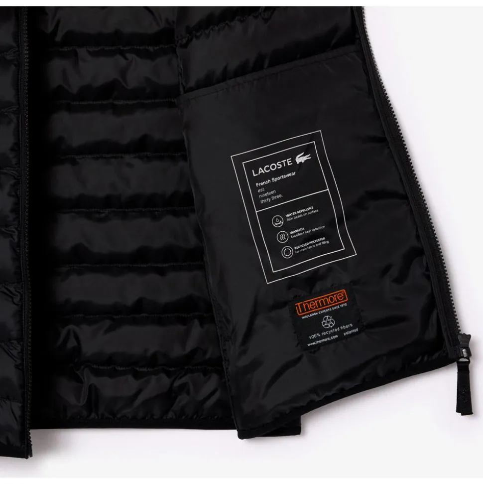 La veste de golf sans manches Lacoste Sportswear Sleeveless est pensée pour allier protection, confort et liberté de mouvement sur le parcours. Confectionnée en polyester recyclé, elle met en avant une conception durable tout en garantissant performance et durabilité. Son tissu en taffetas bénéficie d’un traitement déperlant, idéal pour faire face à l’humidité légère ou aux rosées matinales. Le rembourrage Thermore® en fibres recyclées assure une isolation efficace sans ajouter de volume, maintenant une chaleur agréable lors des journées plus fraîches. Le col montant protège du vent et accentue le confort, tandis que les deux poches latérales zippées permettent de garder en sécurité petits accessoires ou effets personnels. Une pièce technique, pratique et stylée, conçue pour accompagner les golfeurs dans toutes leurs sessions à la fraîche.