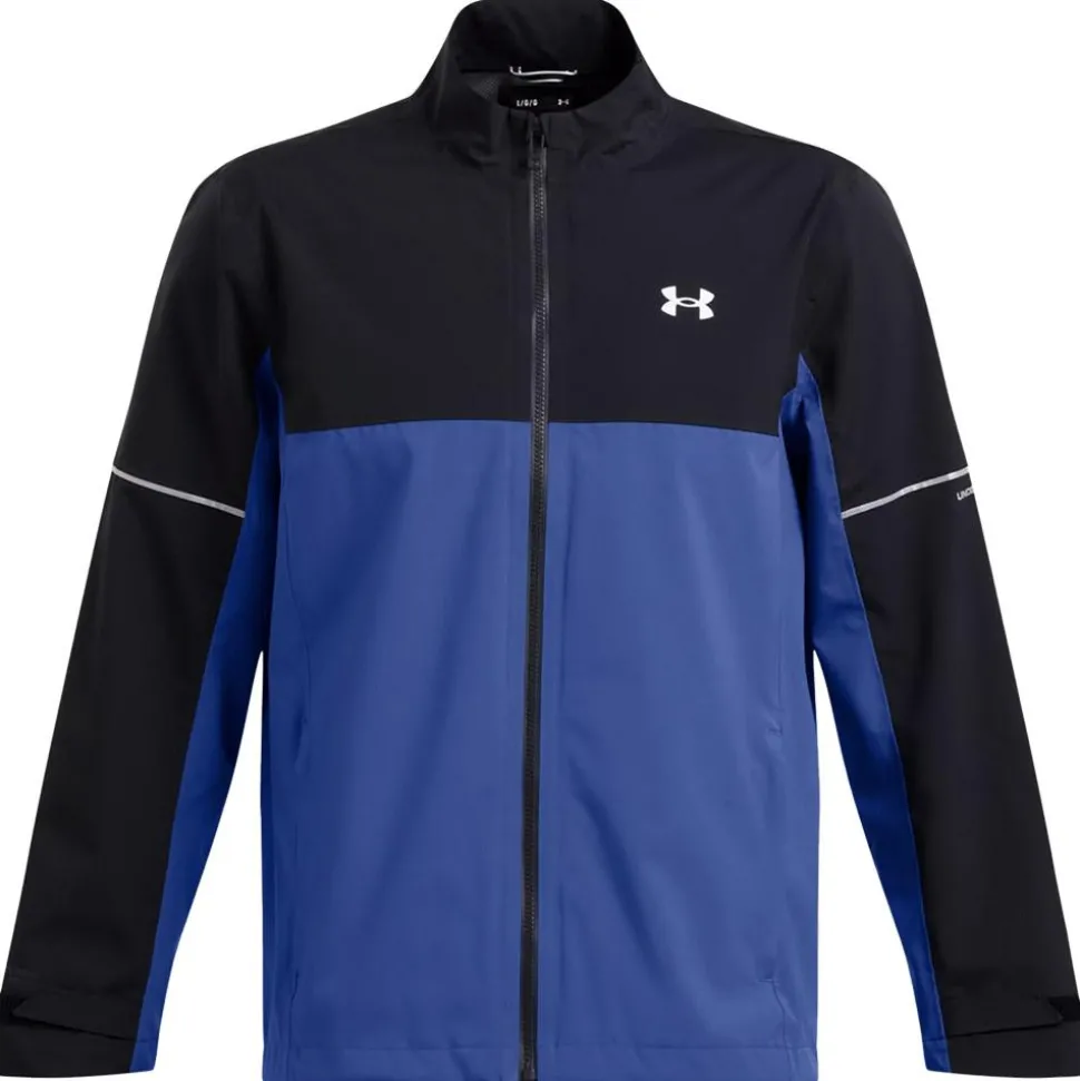 La Drive Rain Jacket Black Tech Blue Metallic Silver d’Under Armour est une veste de golf imperméable et respirante, idéale pour jouer confortablement sous la pluie.