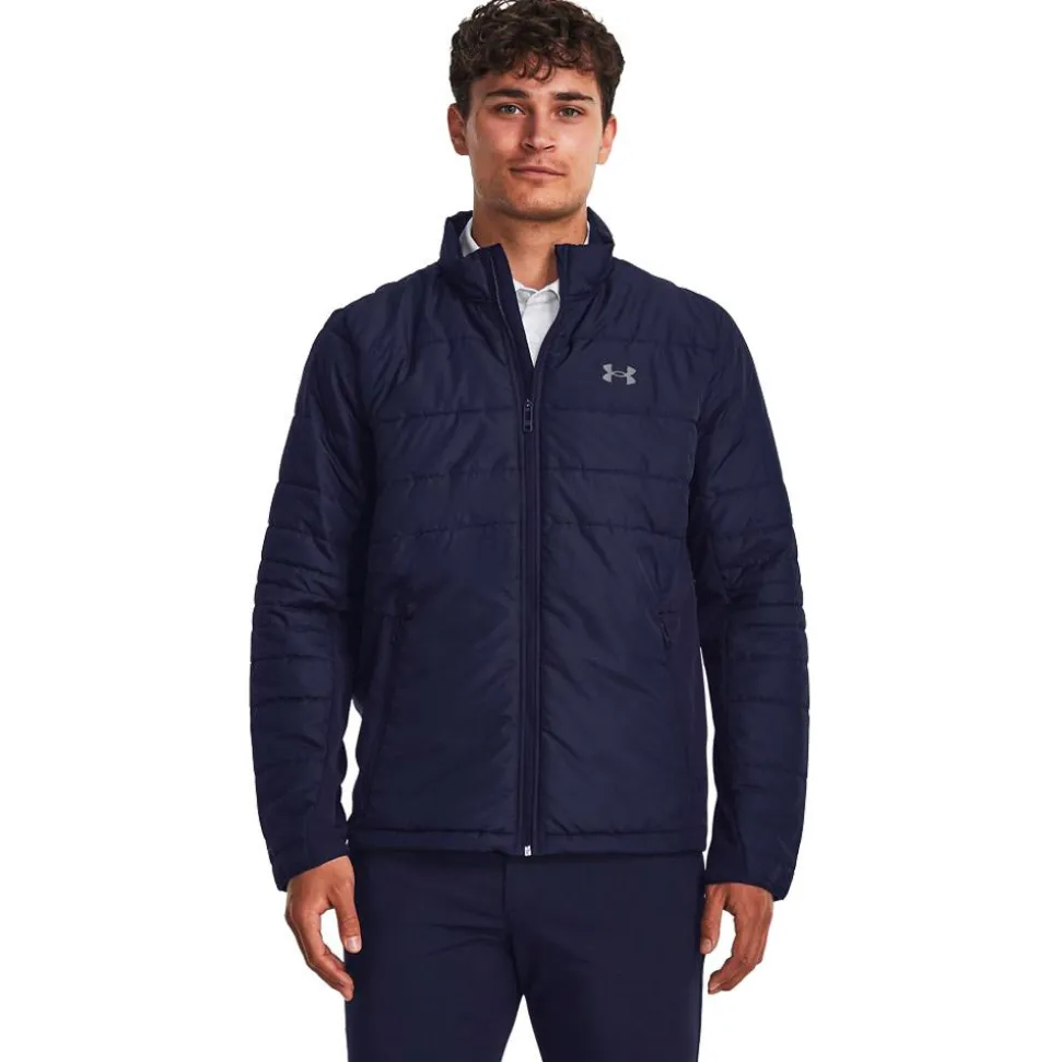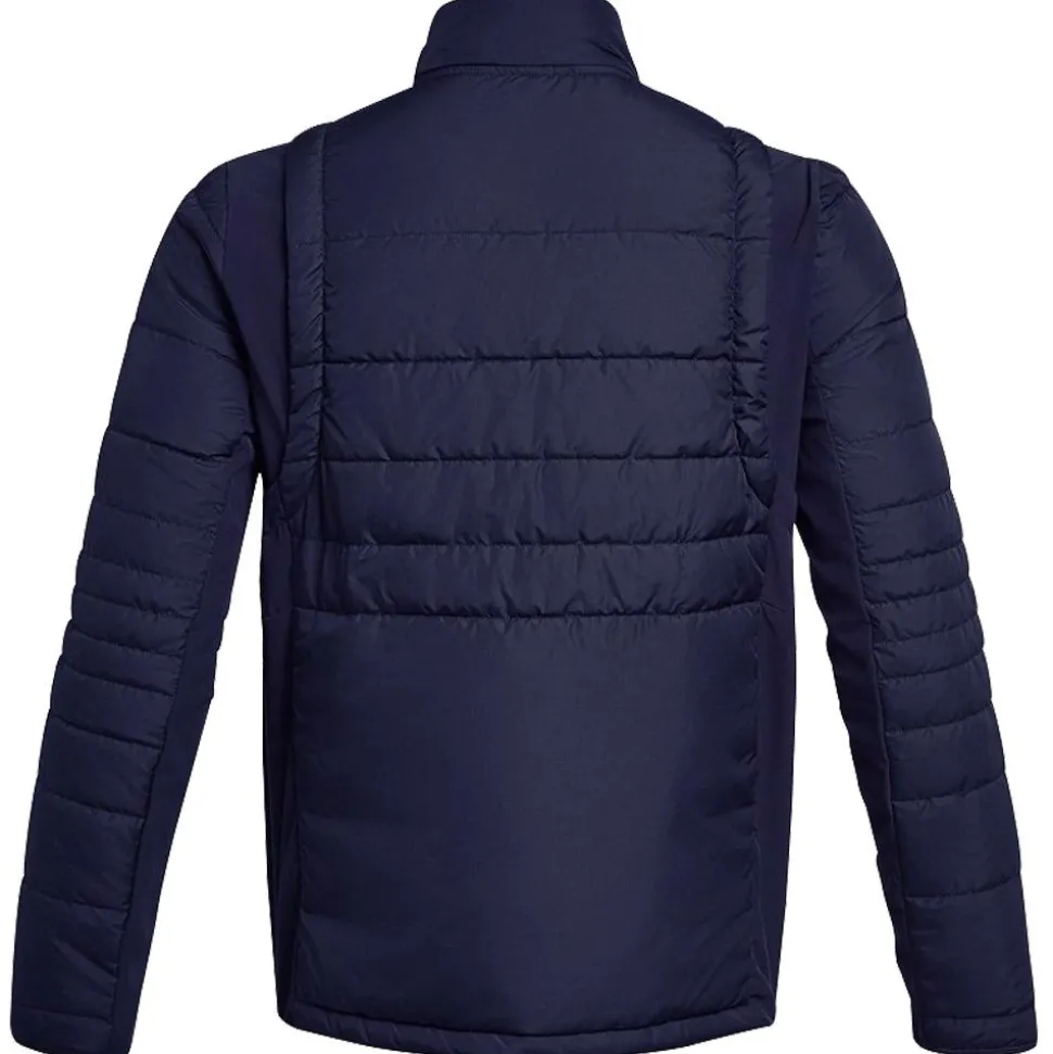 La veste Storm Session Golf de la marque Under Armour est conçue de manière ergonomique pour vous accompagner sur les parcours quand le temps est incertain. Sa coupe vous laisse libre de vos mouvements, vous permettant de conserver une grande aisance au swing. Elle bénéficie d’un traitement déperlant qui permet aux gouttes de pluie de glisser à la surface sans imprégner la matière. Elle n’est toutefois pas imperméable et ne convient pas en cas de pluie soutenue. Elle présente une isolation synthétique, dont le taux de remplissage est de 80 g au niveau du corps et de 60 g sur les manches, vous garantissant une chaleur confortable, tout en restant légère. Vous êtes ainsi à l’abri de la fraîcheur, sans risque de surchauffer quand le thermomètre augmente un petit peu ou que vos efforts s’intensifient. Pratique et fonctionnelle, cette veste dispose de poches latérales zippées et d’une poche poitrine intérieure pour garder vos effets personnels sous la main.