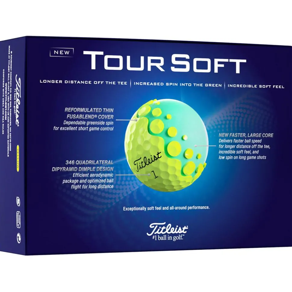 La balle de golf Titleist Tour Soft est conçue pour exceller du tee au green. Elle bénéficie d’un noyau large et rapide qui garantit un toucher d’une douceur remarquable. Elle se distingue par sa capacité à parcourir de longues distances, grâce à un ensemble aérodynamique efficace.