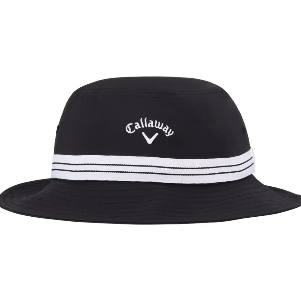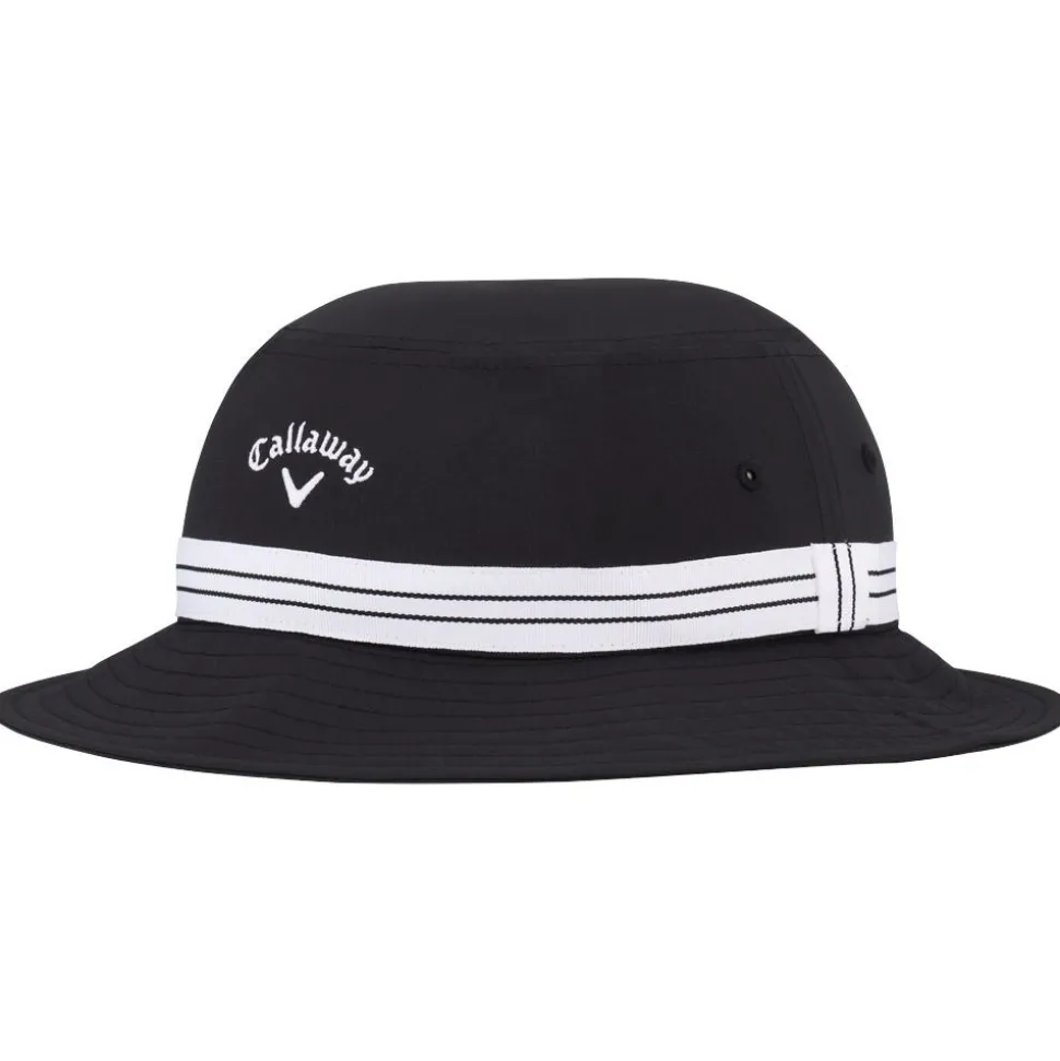 Le Bucket Hat Black de Callaway Golf est un bob fonctionnel avec bandeau de transpiration intégré et protection UV50+, idéal pour le confort et la protection solaire sur les parcours.