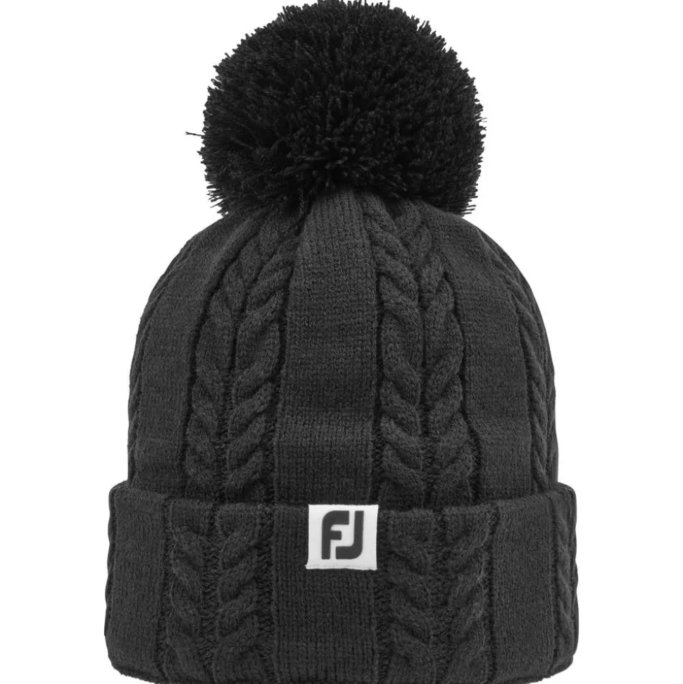 Le Cable Knit Bobble Black de Footjoy est un bonnet à pompon féminin idéal pour garder la tête au chaud lors des parties de golf hivernales.