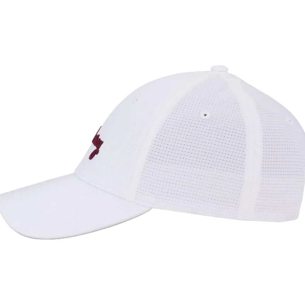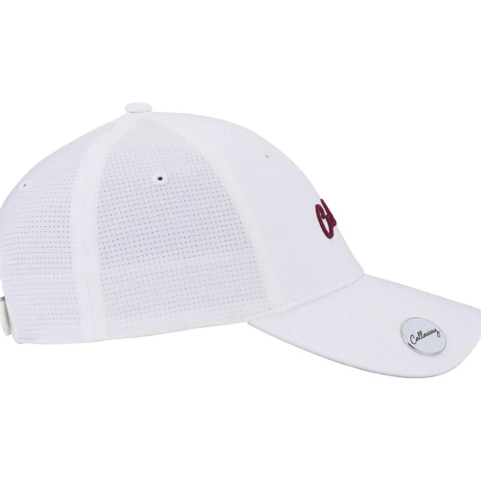 La casquette Callaway Women Stitch Magnet White Red Plum allie confort et praticité, avec une matière microperforée favorisant l’aération et un marqueur de balle aimanté intégré.