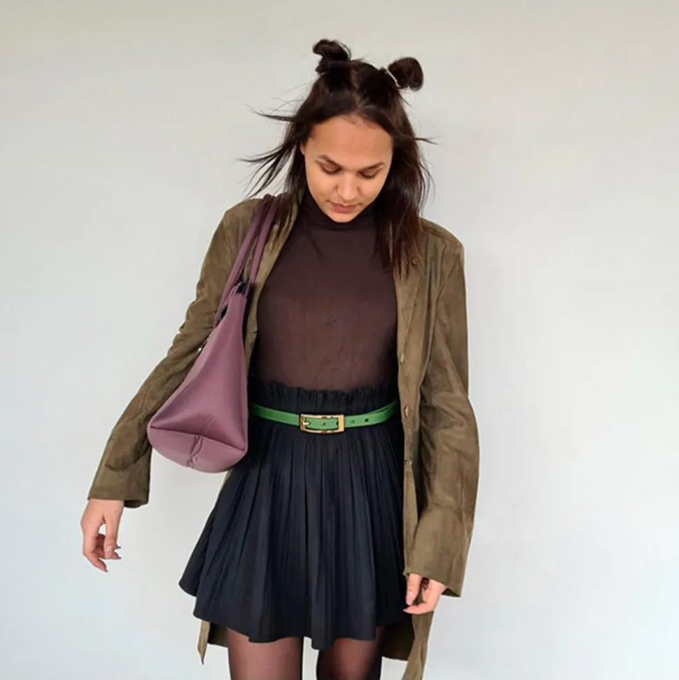 La ceinture Skimp La Charmeuse Kaki, ajustable et résistante, est fabriquée en plastique recyclable et se révèle pratique pour les voyages aériens.