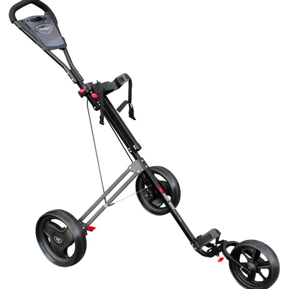 Le Masters Junior 5 Series 3 Noir est un chariot de golf idéal pour les enfants, avec une poignée ajustable, un porte-carte et des roues détachables pour une utilisation facile.
