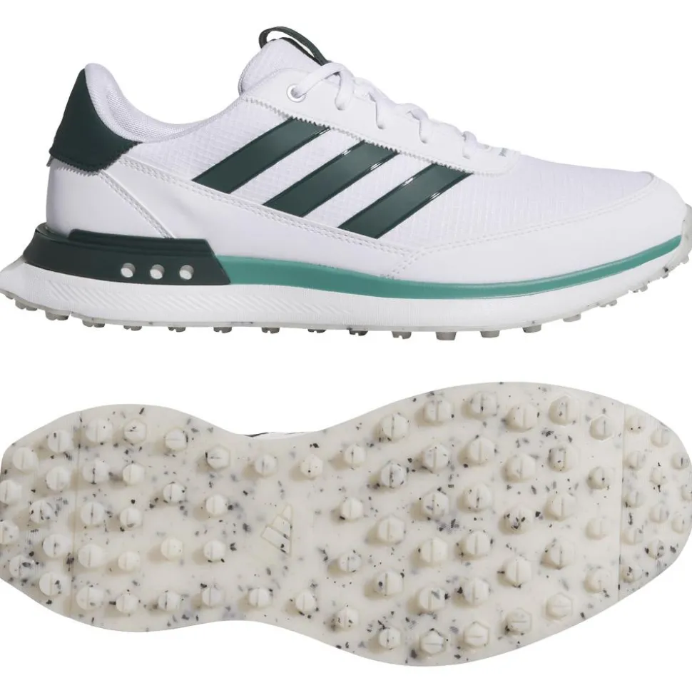 La chaussure de golf Adidas S2G SL 24 Cloud White Wonder Silver Silver Pebble allie style moderne, protection imperméable et confort durable pour performer par tous les temps sur le parcours.