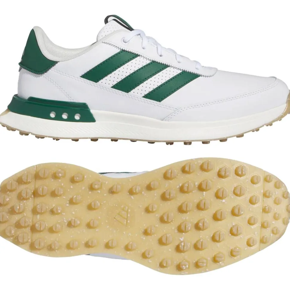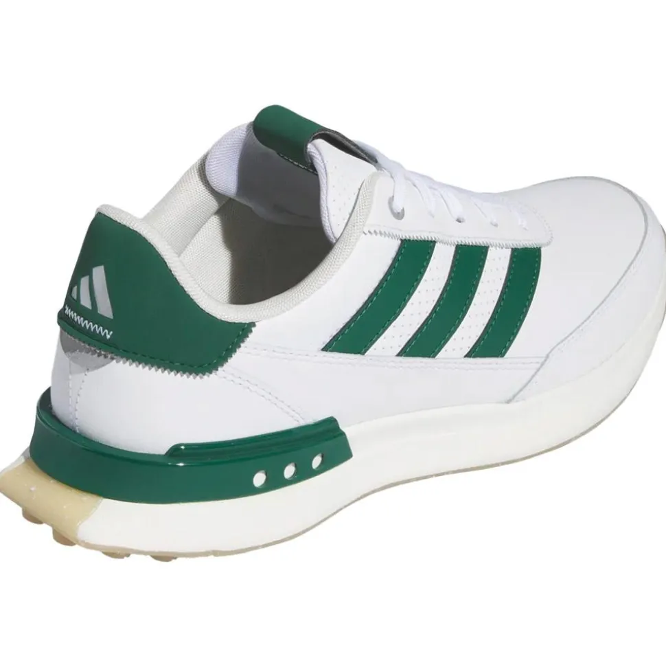 La Adidas S2G SL Leather 24 White Collegiate Green Gum est une chaussure de golf imperméable au style basket, offrant confort, stabilité et traction polyvalente.