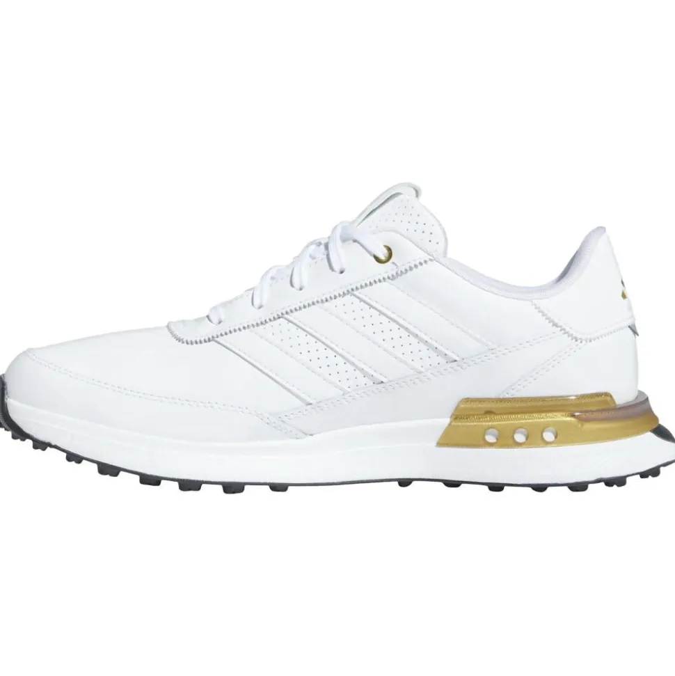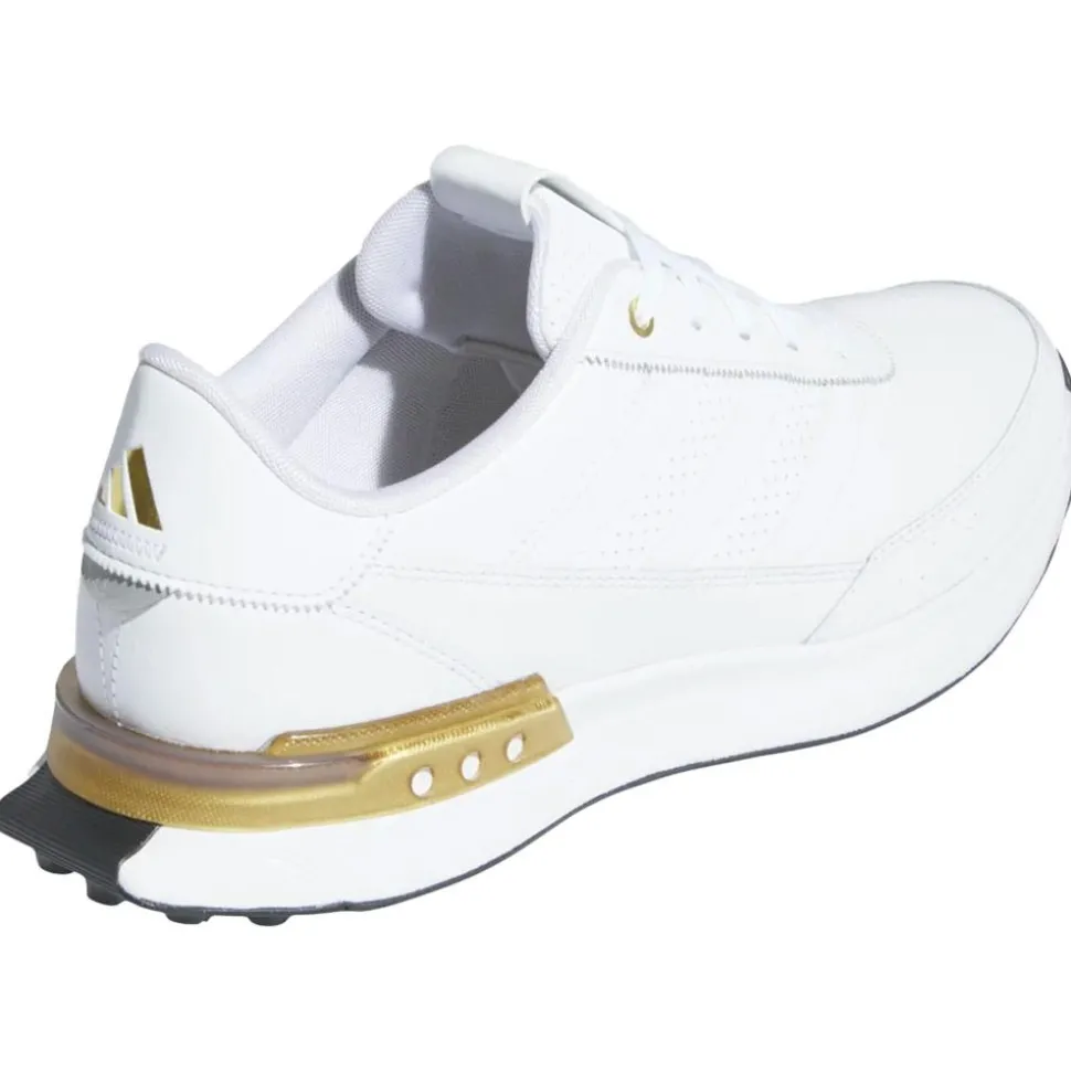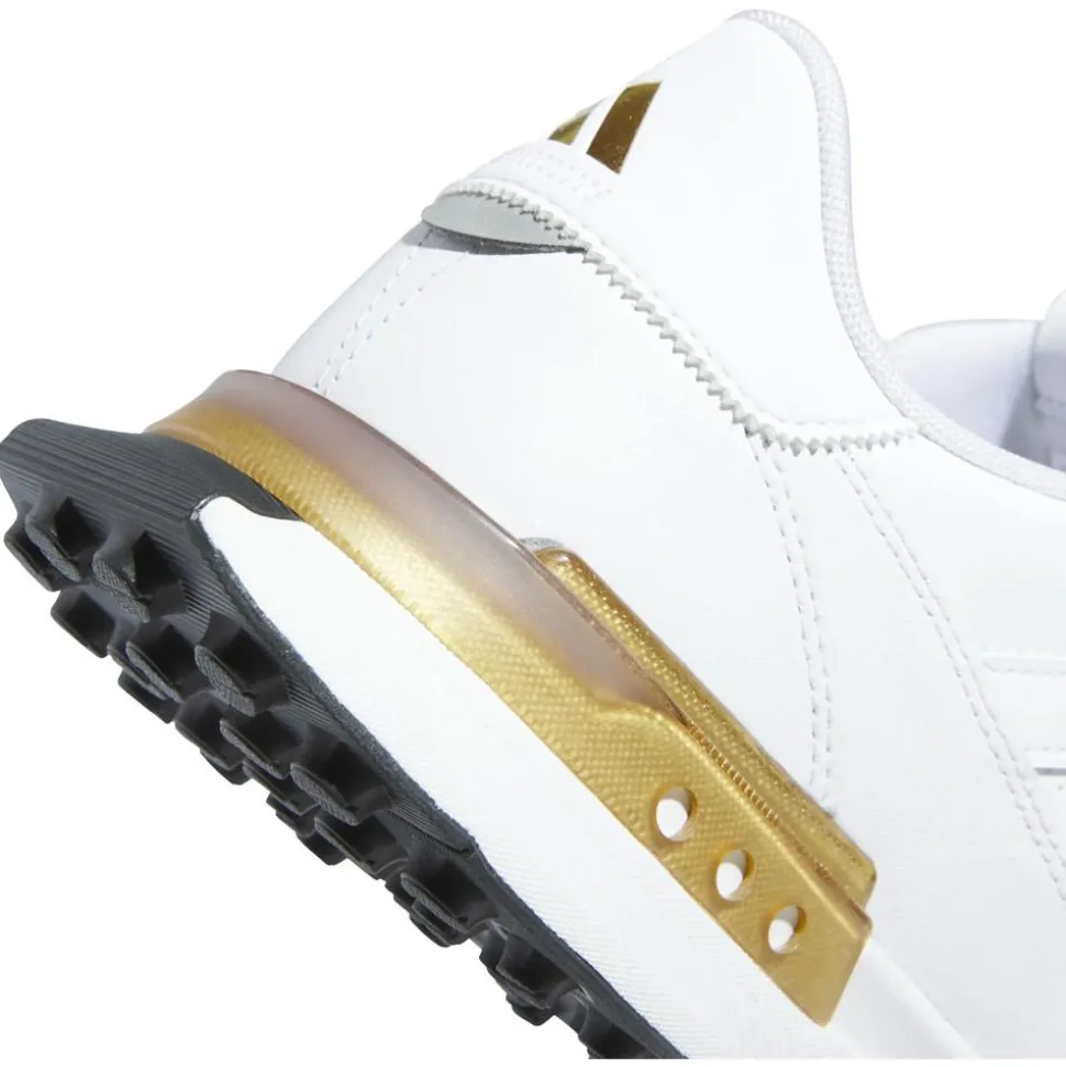 La chaussure Adidas S2G SL Leather 24 White White Gold Met combine style et performance, avec une tige en cuir imperméable et un clip au talon pour plus de support.