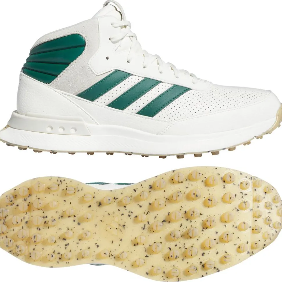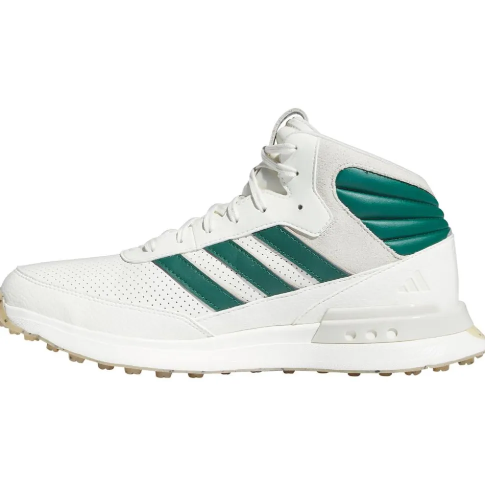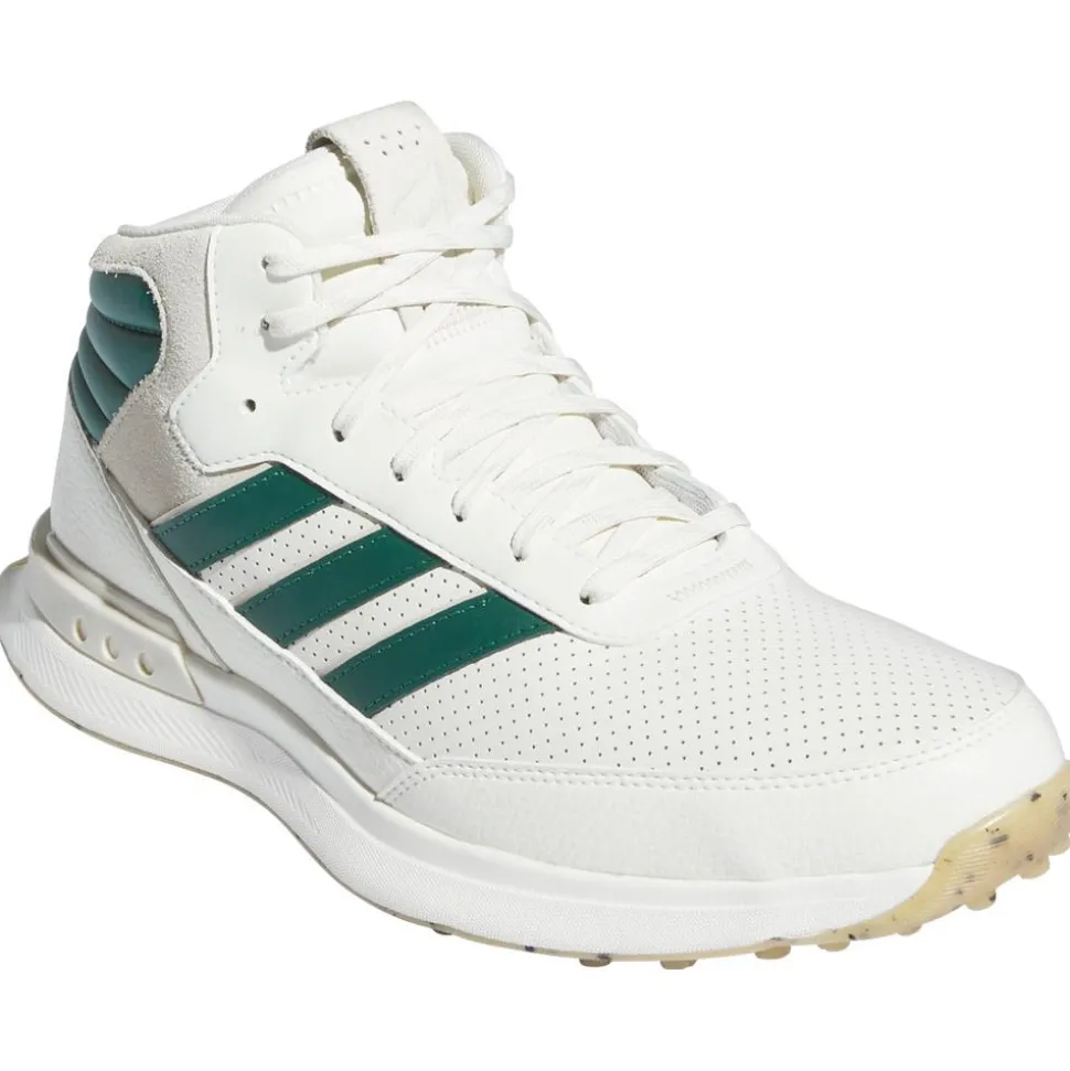 Avec une tige en cuir et la technologie RAIN.DRY, la chaussure golf adidas S2G SL Mid Off White Collegiate Green Alumina offre une protection efficace contre l’humidité pour une performance optimale.