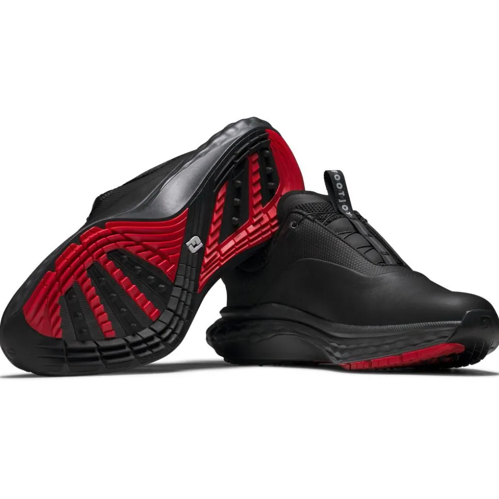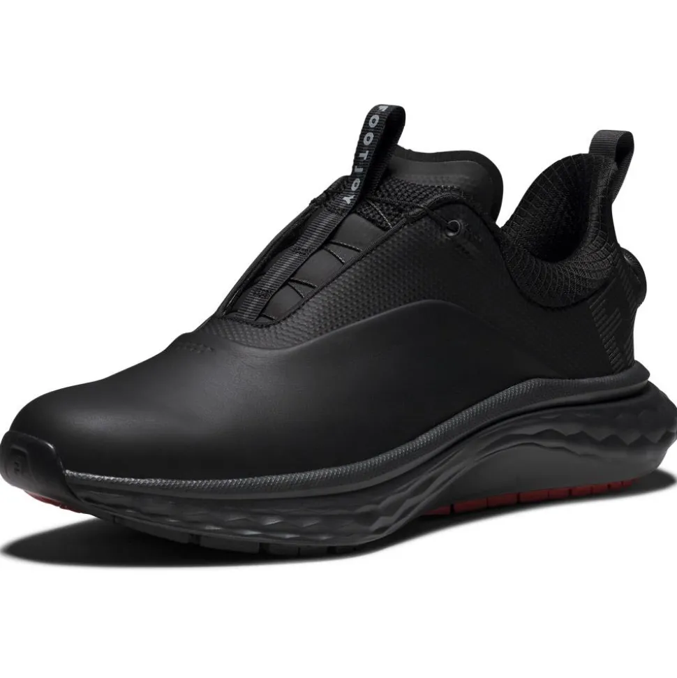 La chaussure Footjoy Quantum BOA Black Grey Red allie confort et performance avec son système de serrage BOA, sa tige en cuir imperméable et son amorti exceptionnel.
