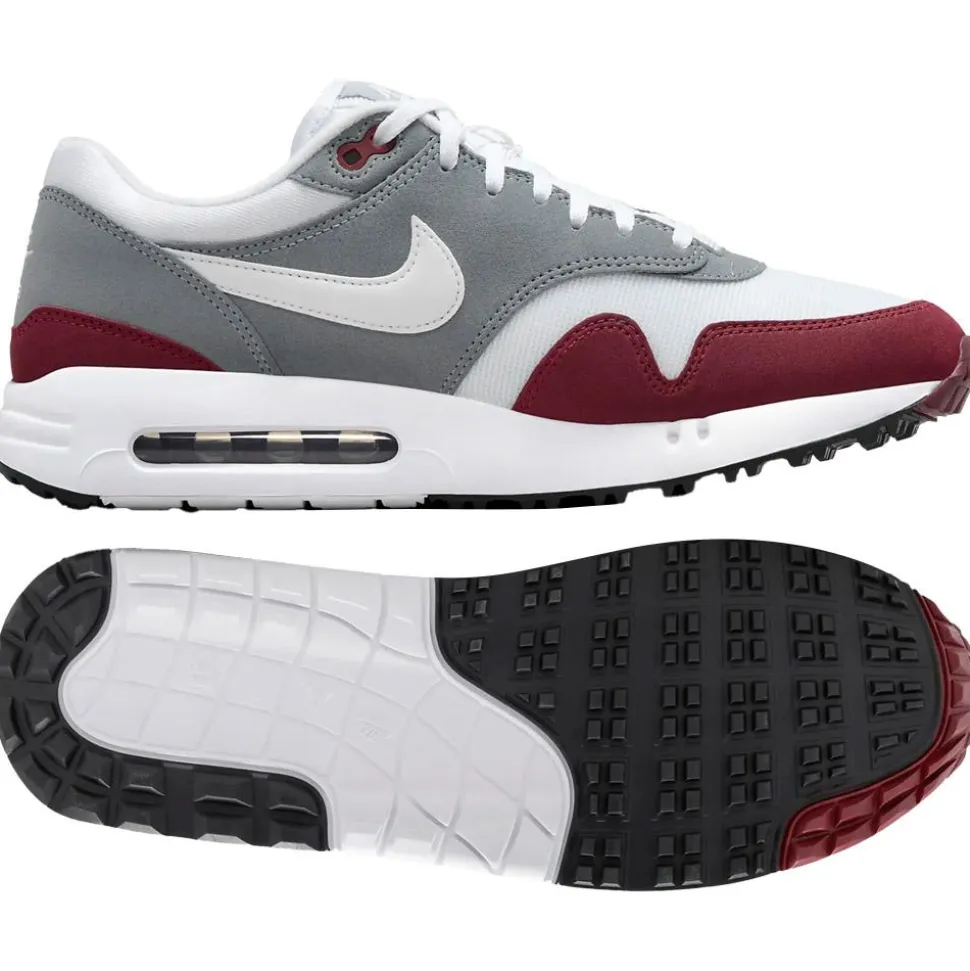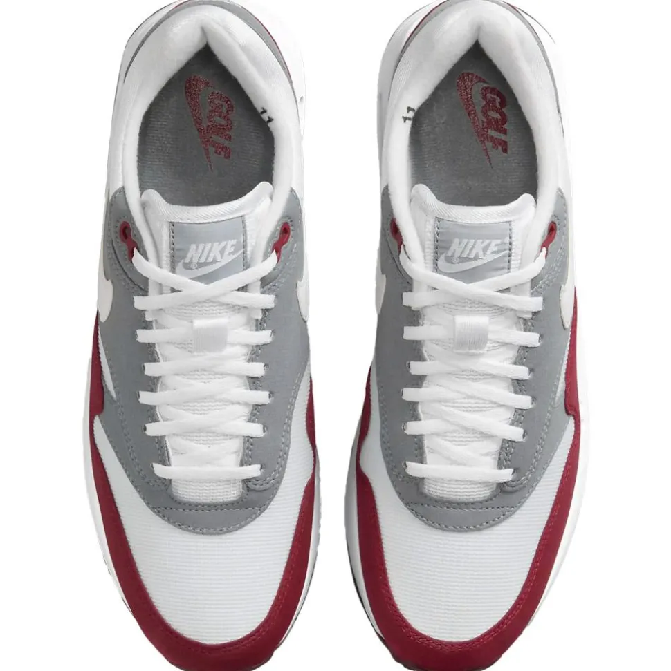La chaussure de golf Nike Air Max 1 ’86 OG G Team Red White Cool Grey Black combine un design intemporel à une technologie moderne, créant une chaussure qui s’adapte à toutes les conditions sur les parcours.