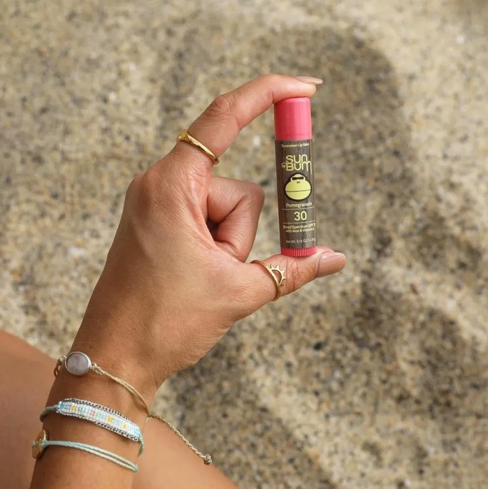 Le Sun Bum Original Lip Balm SPF 30 Pomegranate est un baume à lèvres hydratant, végétalien et respectueux des récifs avec une haute protection solaire.