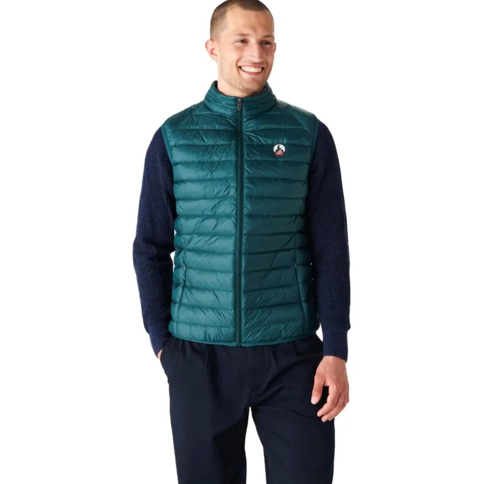Confectionnée avec une isolation 90% duvet, 10% plumes qui vous protège efficacement contre le froid, la doudoune sans manches pour homme Tom Noos de la marque française Jott se porte en toutes circonstances, y compris en dehors des parcours de golf.