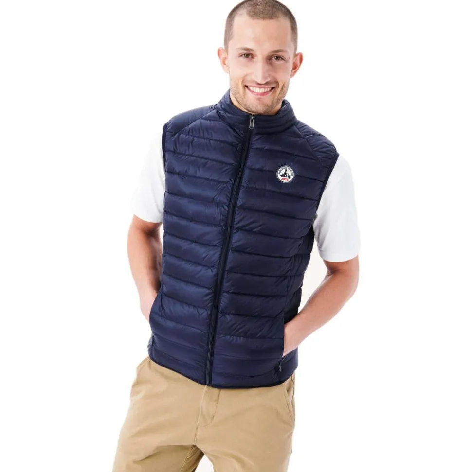 Confectionnée avec une isolation 90% duvet, 10% plumes qui vous protège efficacement contre le froid, la doudoune sans manches pour homme Tom Noos de la marque française Jott se porte en toutes circonstances, y compris en dehors des parcours de golf.