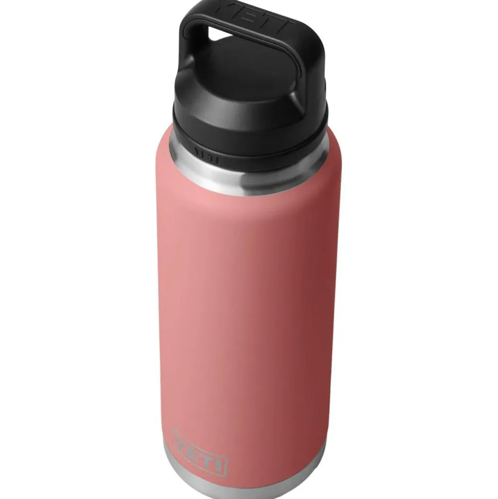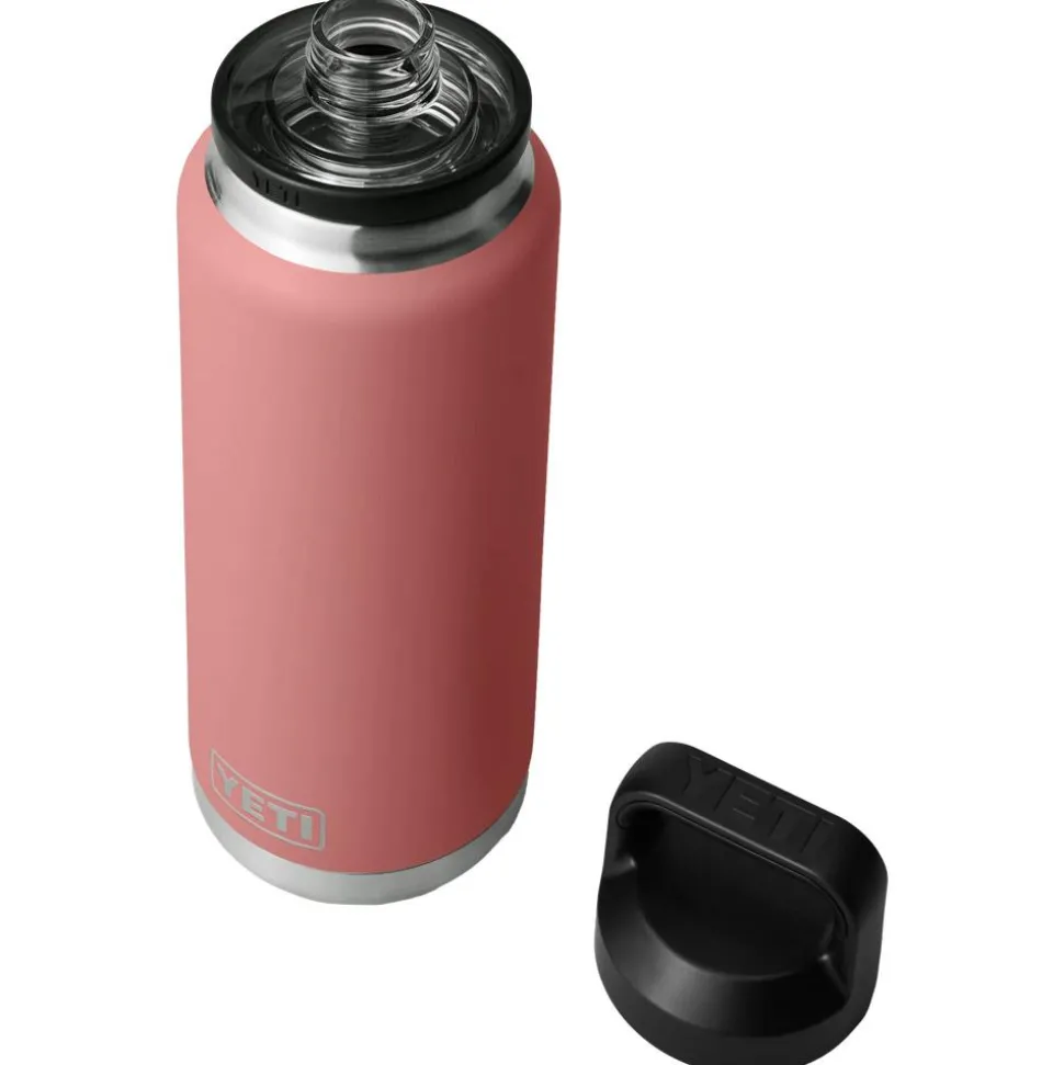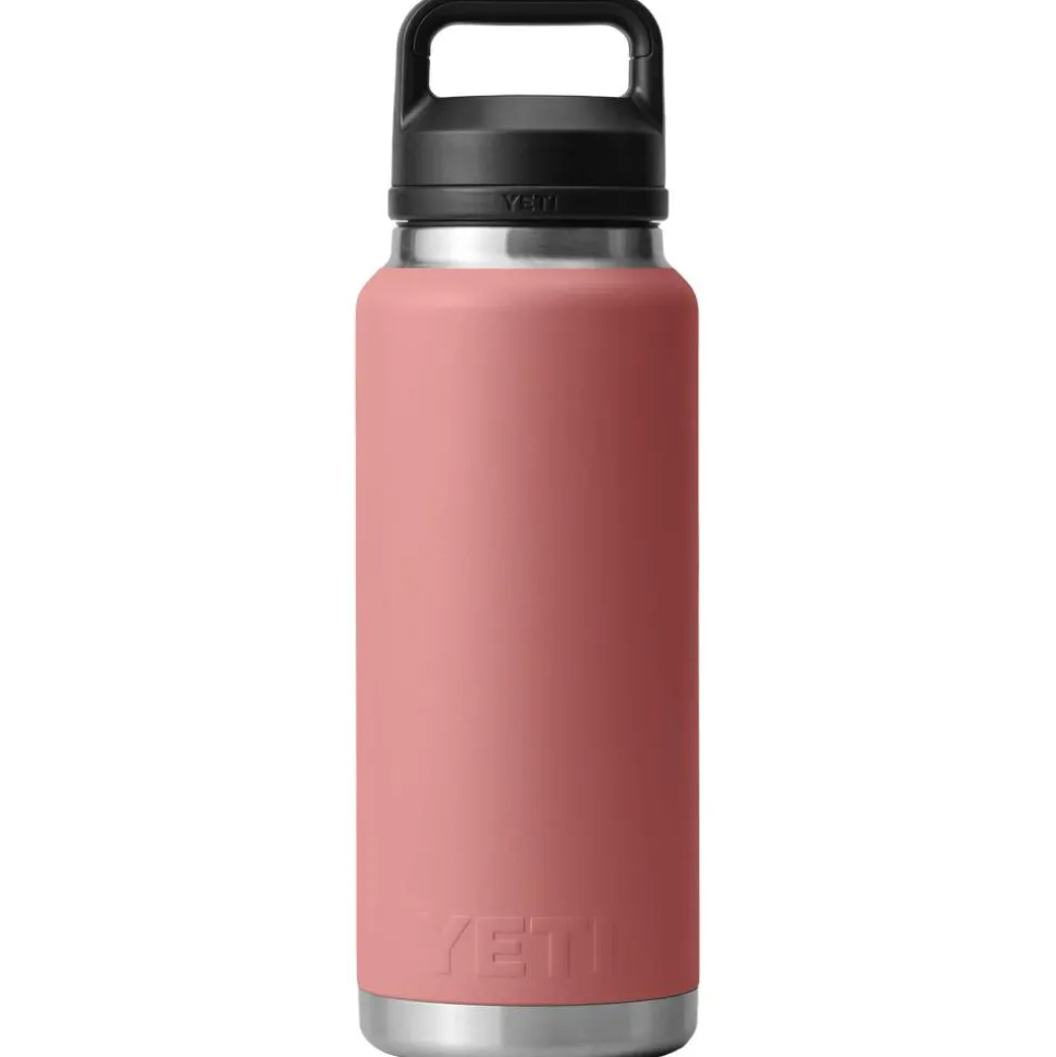 La gourde isotherme Yeti Rambler 36 Oz (1.1L) Sandstone Pink est fabriquée en acier inoxydable et son isolation à double paroi sous vide garde les boissons chaudes ou froides pendant longtemps.