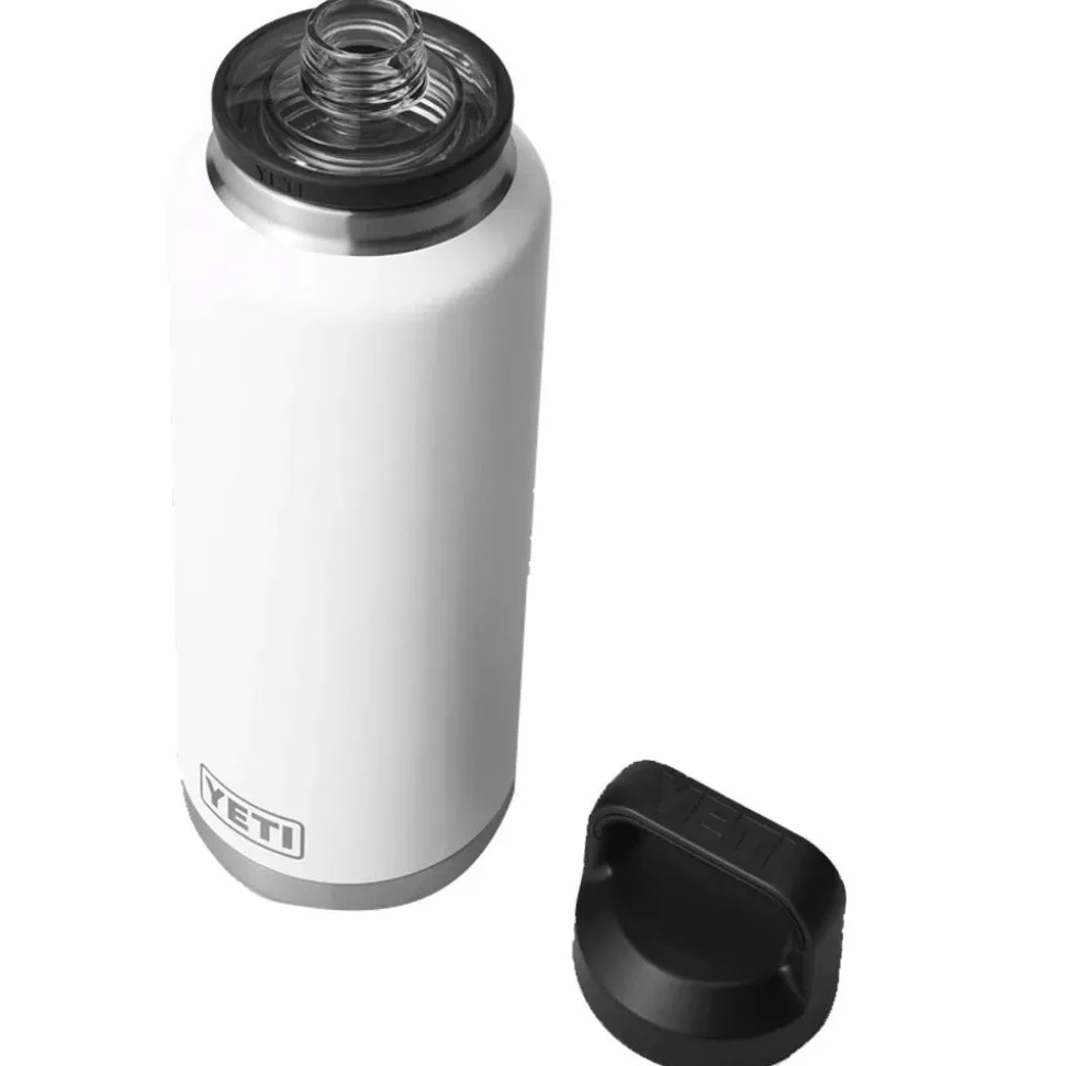 La gourde Rambler 46 Oz (1,4L) White de Yéti est une bouteille en acier inoxydable solide et sans BPA, avec une isolation sous vide à double paroi, compatible avec le lave-vaisselle, pour garder votre boisson à la température idéale lors de vos aventures en plein air.