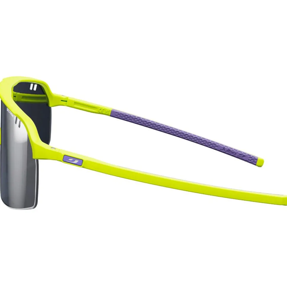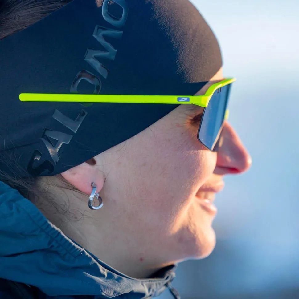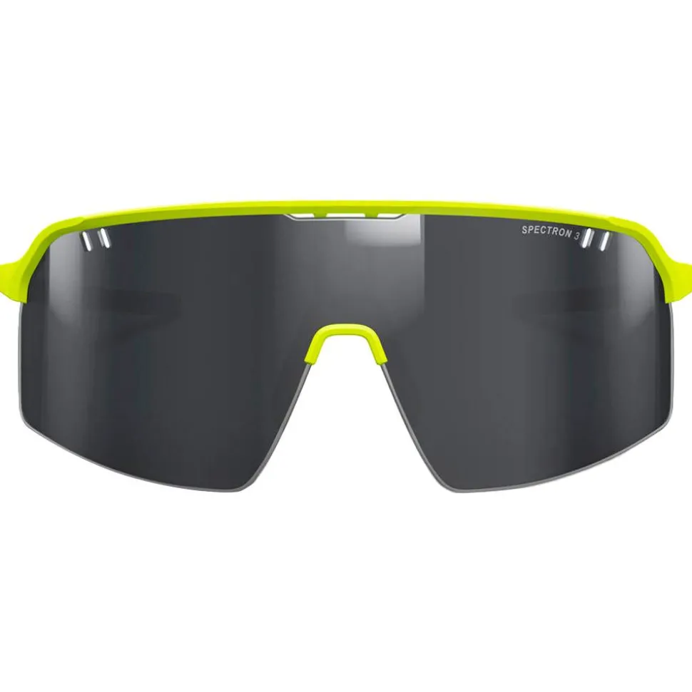 Les lunettes de soleil Julbo Intensity Mat Jaune Fluo Spectron 3 profitent d’un style minimaliste et d’une monture enveloppante pour une grande stabilité lors de trails ou de sorties à VTT.