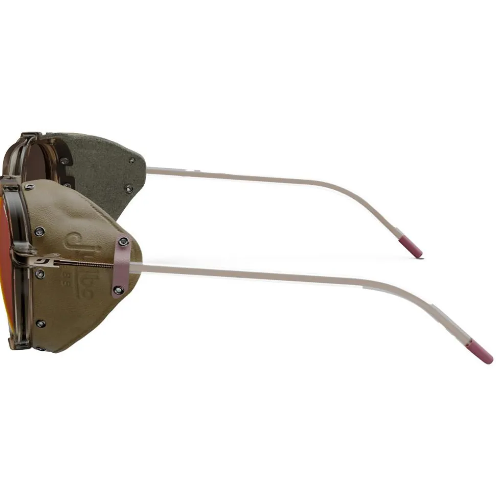 La monture enveloppante des lunettes de soleil Julbo Legacy Translucide Brillant Rose Or Beige Reactiv 1-3 Glare Control accueillent des verres photochromiques pour une vision claire en toutes circonstances.