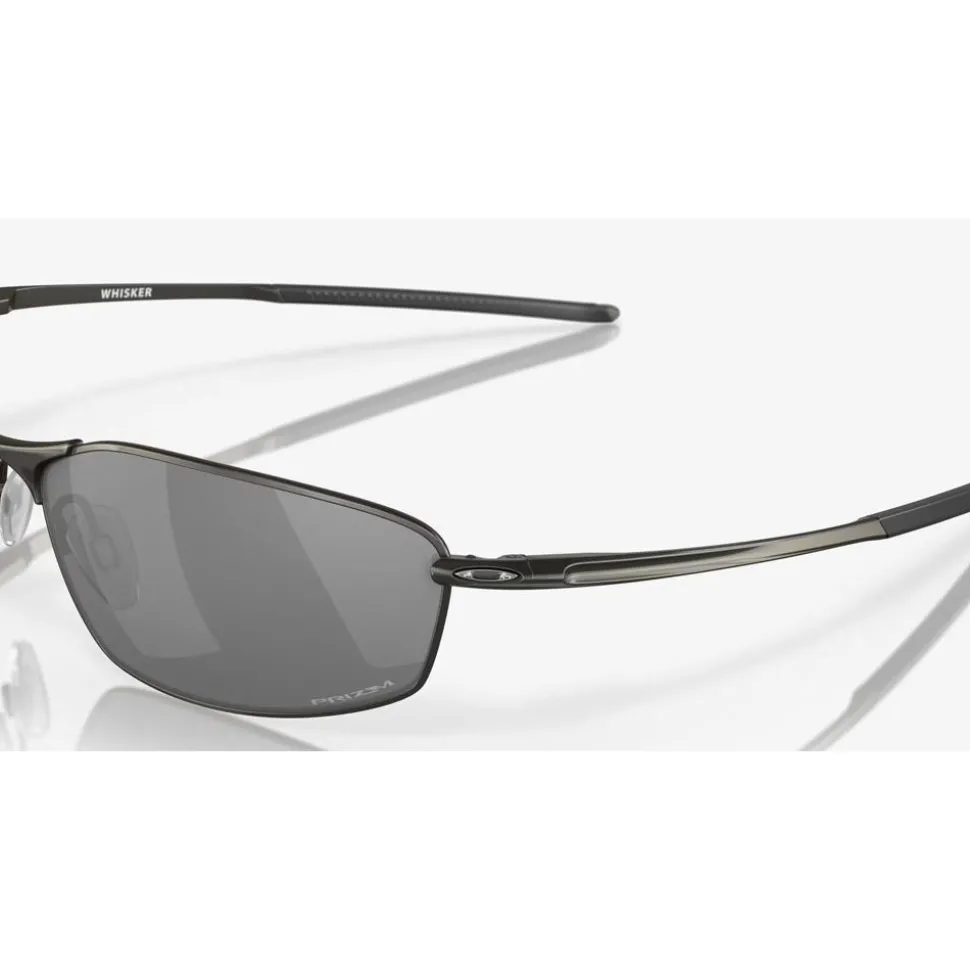 Les lunettes de soleil Oakley Whisker présentent une monture fine et légère en alliage C-5 de forme allongée. Les plaquettes de nez réglables ainsi que les manchons de branches en Unobtainium favorisent une bonne tenue dans toutes les conditions, y compris en cas de pluie ou de transpiration.