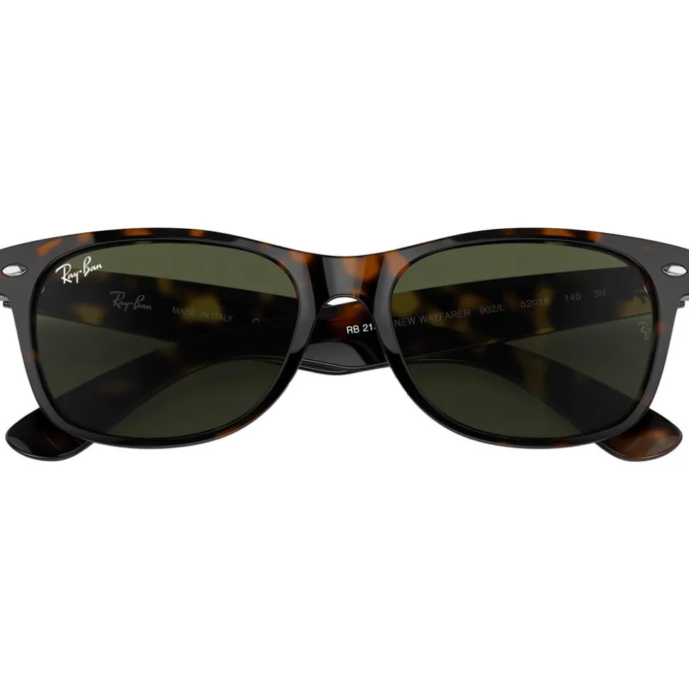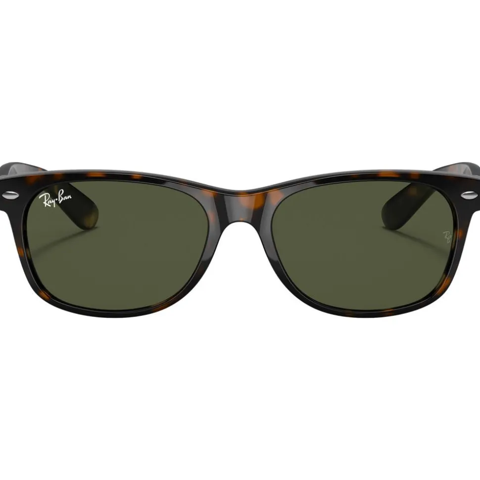 Vision nette assurée avec les lunettes de soleil Ray Ban RB2132 New Wayfarer Classic Polished Tortoise Green G-15 qui protègent très bien les yeux grâce à leurs verres minéraux de catégorie 3.
